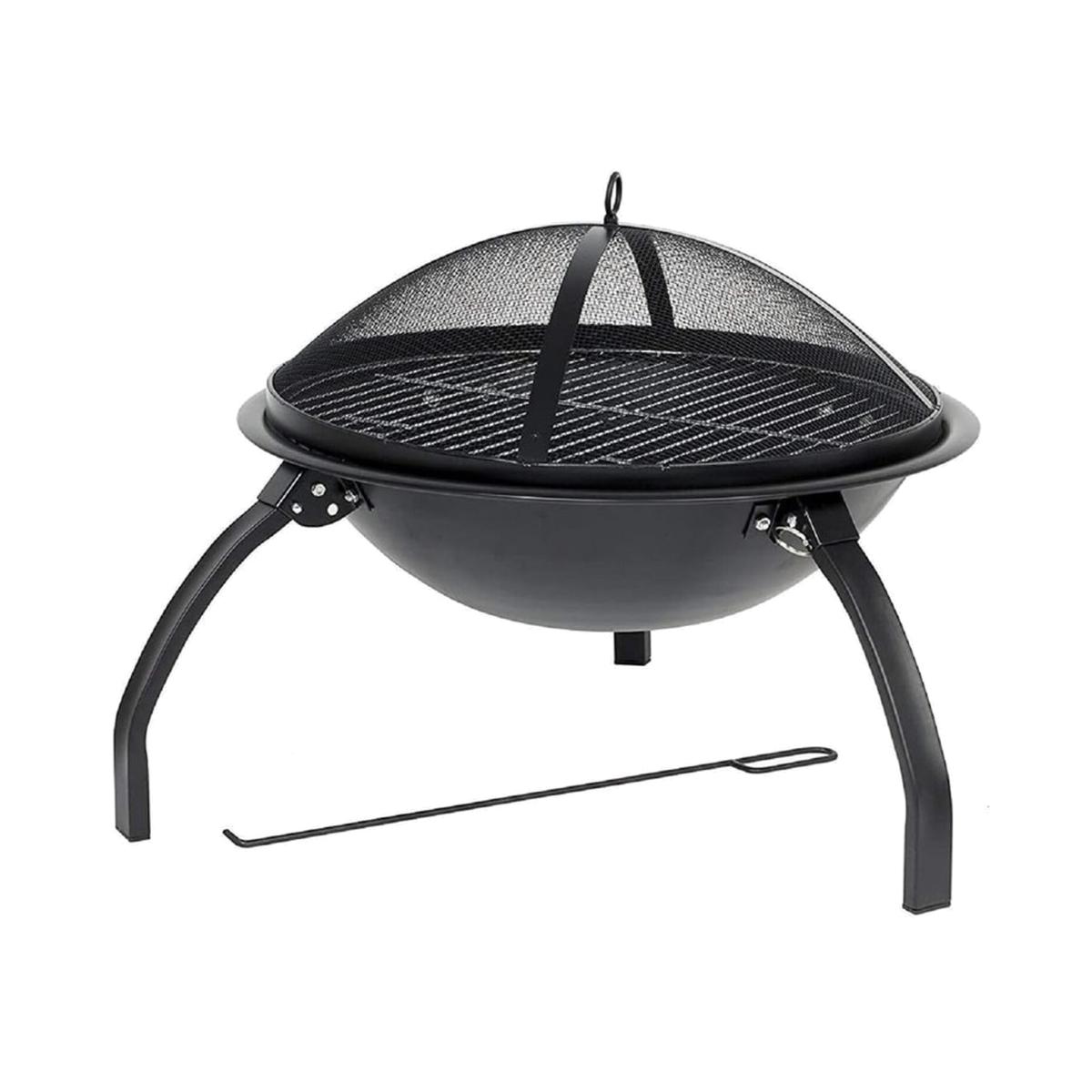 Wadan large foldable fire pits are Made from high quality and durable steel. This fire pit is sturdy, durable while still easy to clean and maintain. Fire pit measures approximately 37 cm in height and 56 cm in diameter. It houses a fire bowl, charcoal grate, mesh cover, poker and a cooking grill. Its oval shape helps emit warmth evenly. Its legs are foldable which ease the storage and transportation process. Large Steel Body Foldable Fire Pit - Black