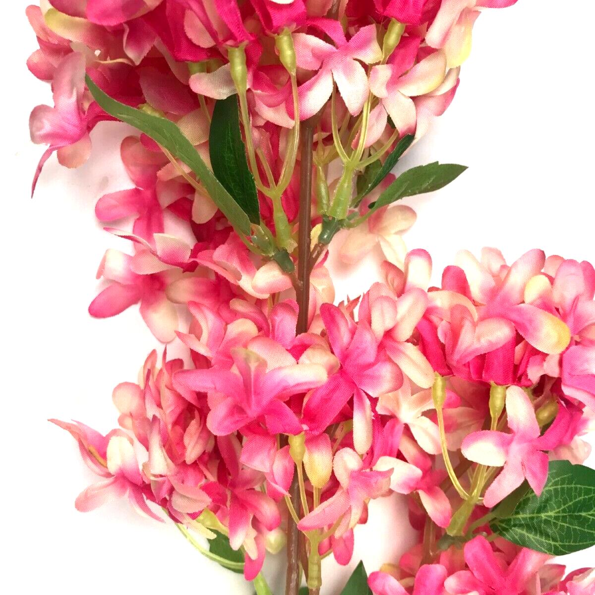 This lovely artificial Flower stem/branch measures 97cm long including the stems and has pink flowers. Perfect for faux flower craft projects, wedding decorations, gifts and tropical flower displays in lobby areas, hallways, living rooms and entertaining areas.
