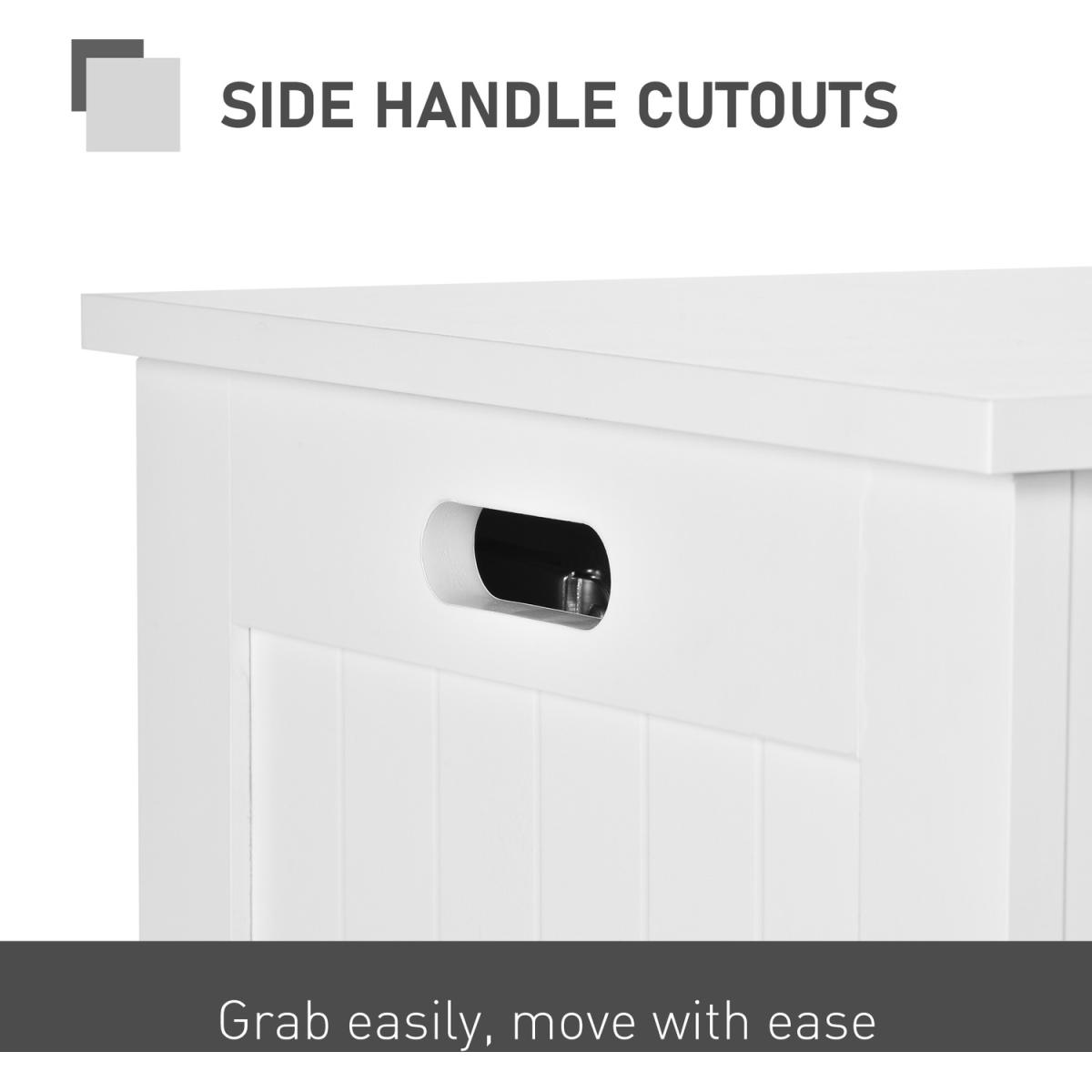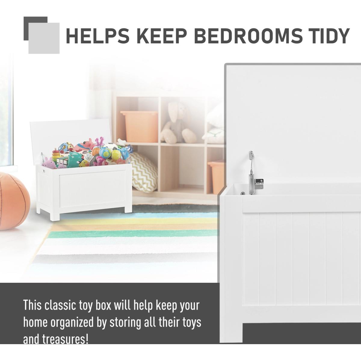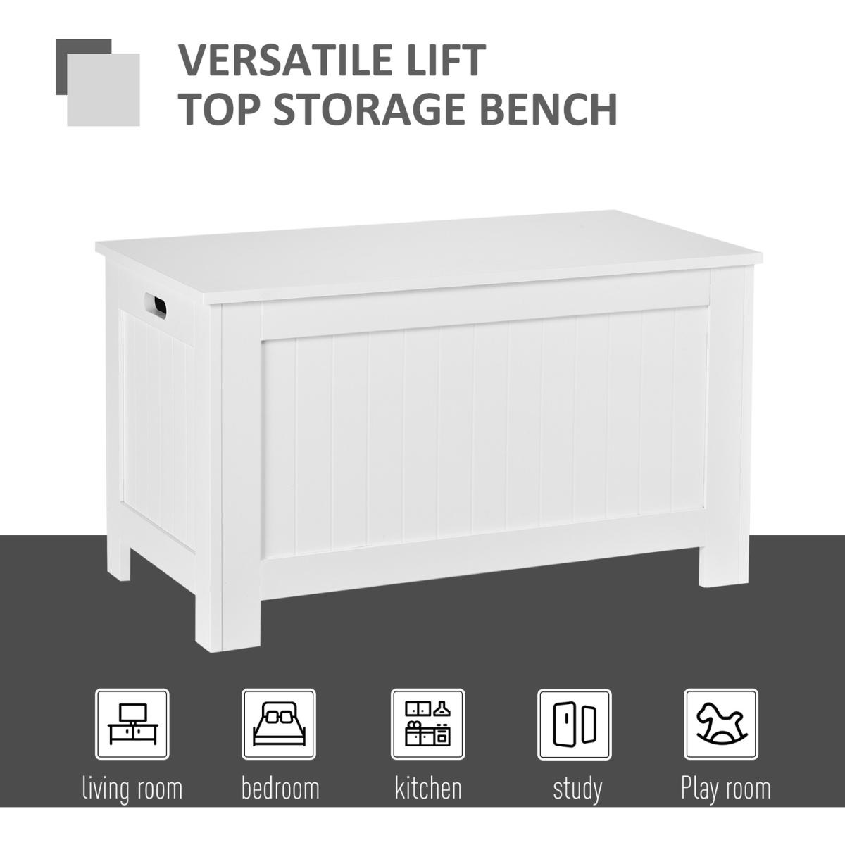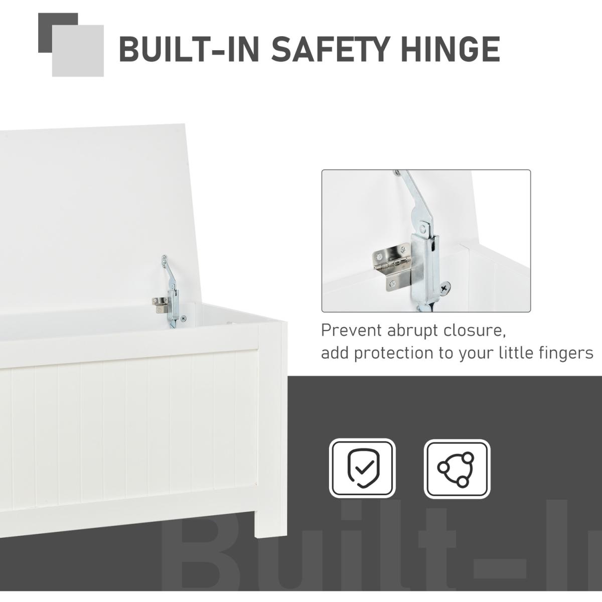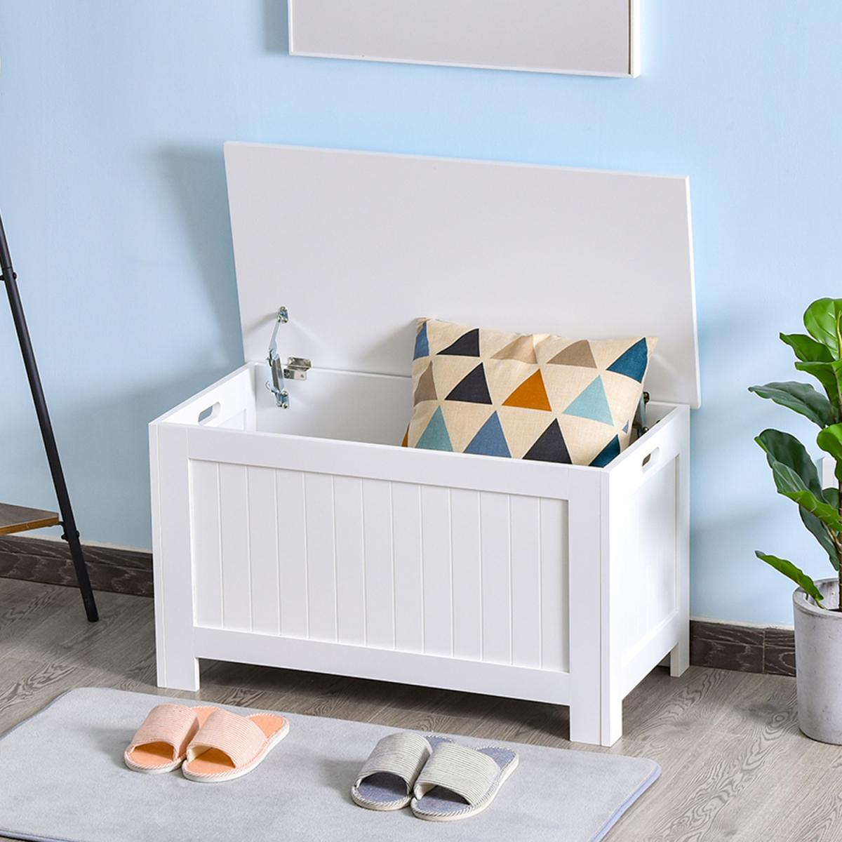 Deep and wide, this spacious chest from HOMCOM is the perfect piece for keeping your home tidy where needed. Made of particleboard, it's durable and easy to maintain and it features safety hinges, so fingers don't get caught when opening and closing the lid. There are two handles so it can be carried with ease. With its simple shape and clean white colour, this versatile piece will welcome itself in all bedrooms, hallways and playrooms galore.