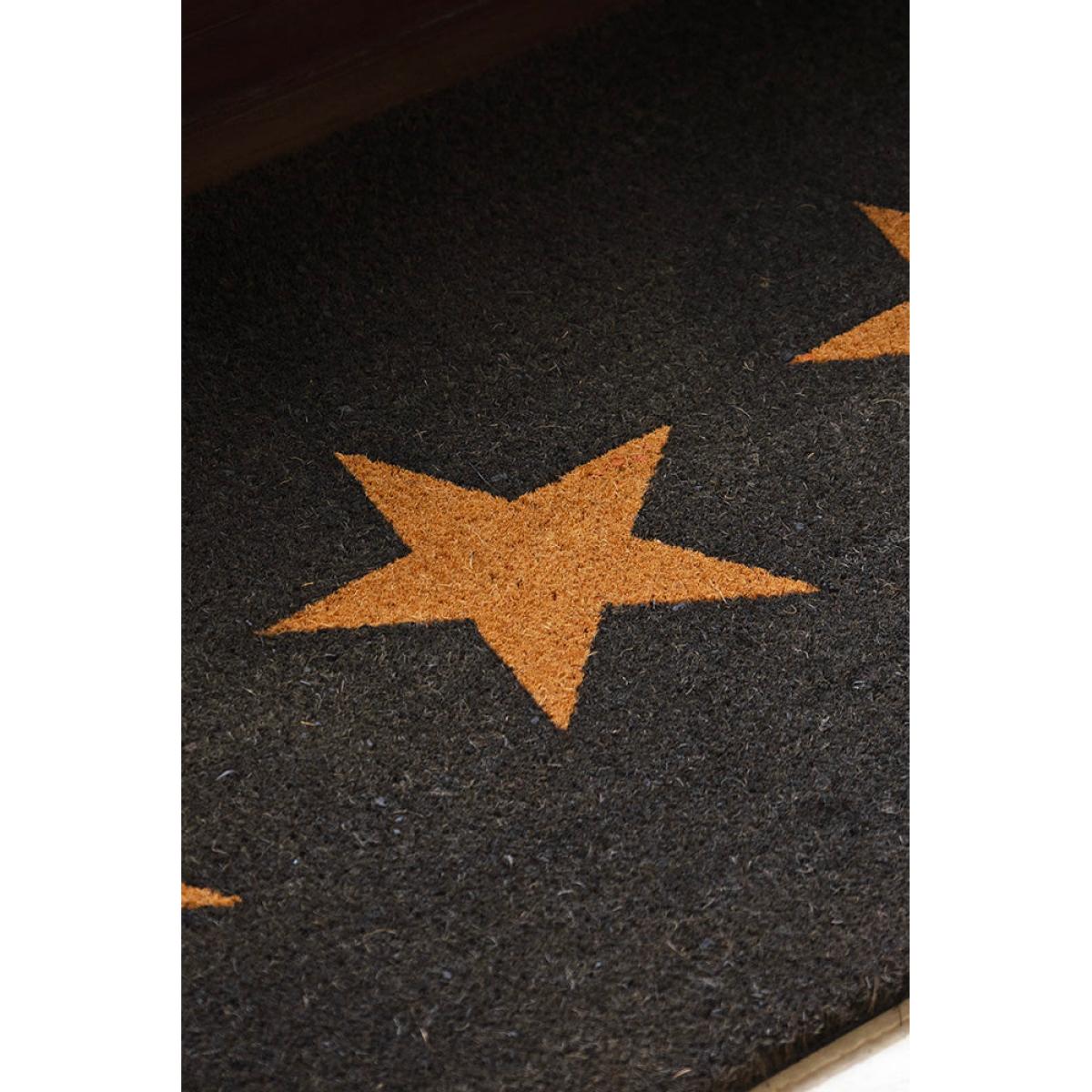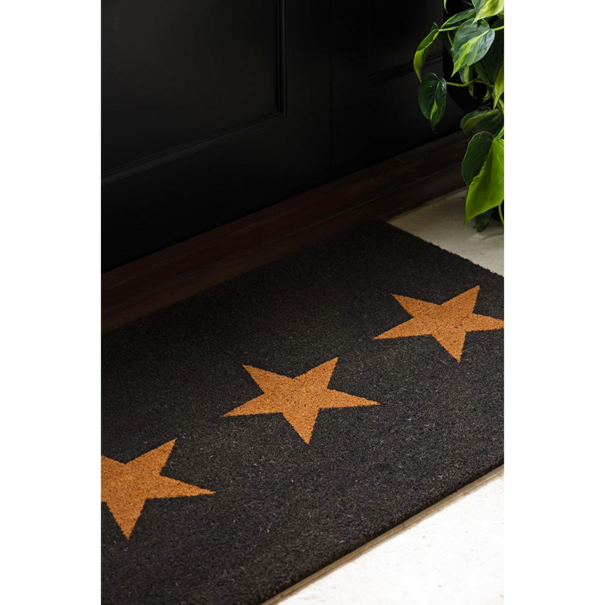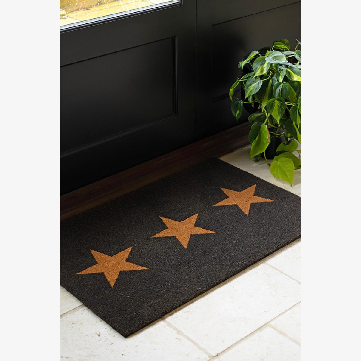 <!--td --> Meet the Large Triple Star Doormat. The bold, modern upgrade your entryway has been waiting for. With its sleek black base and a trio of rich brown stars lined perfectly across the centre, this coir doormat brings all the style with a side of sass. It’s a cool, edgy twist on a classic doormat – darker, sleeker and unapologetically chic. This indoor doormat Is here to make a statement before guests even step inside. Why settle for basic when your doorstep can be this fabulous? Welcome your guests in the stylish way. - Large Triple Star Doormat - Measures: W90cm x D60cm x H2cm - Material:Coconut Fibre - Can only be used outdoors if placed in a fully protected area away from direct rainfall- Direct sunlight and water will damage the mat- Comes with a water-resistant rubber backing- To clean please vacuum rather than shake