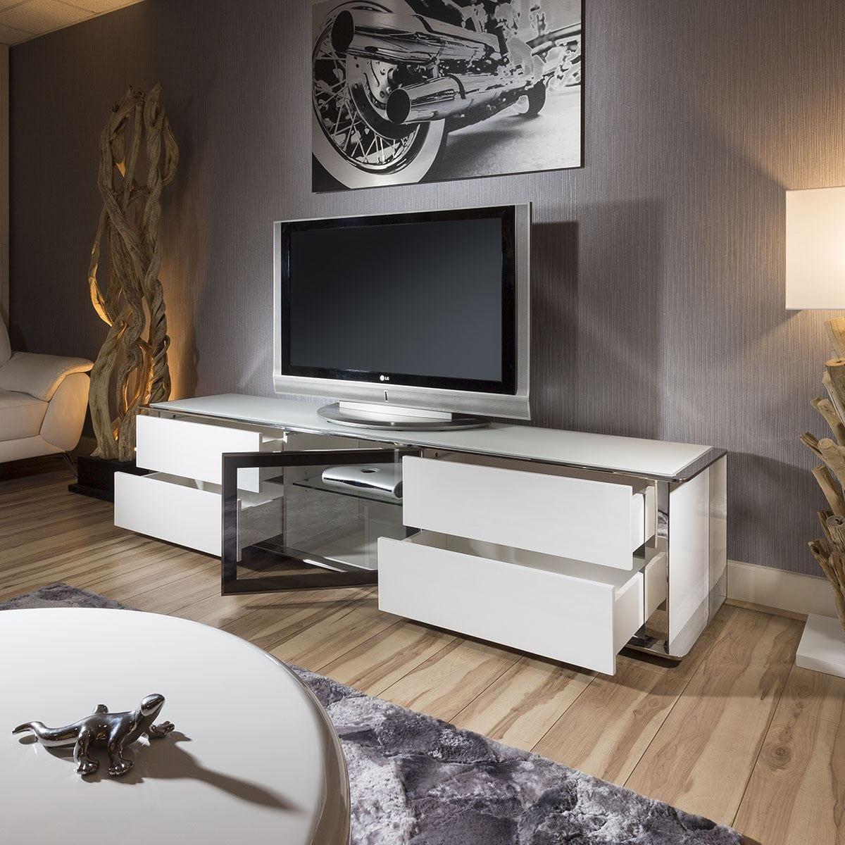 Large TV Cabinet Stand White Gloss and Chrome Modern Quatropi 233 New