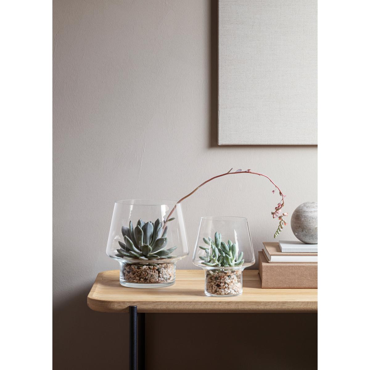 Bring a little nature into your home by creating your own terrarium! This glass vase has been specially designed to host succulents. Nestled in the heart of its glass case, the succulent plant unfolds in complete transparency. Thanks to the transparent glass that lets in as much light as possible, it offers the ideal conditions to flourish. The succulent is a plant native to arid regions, and so is very hardy and easy to look after. Capable of storing a lot of water, it requires very little watering. You can also use this vase to display a bouquet of flowers.