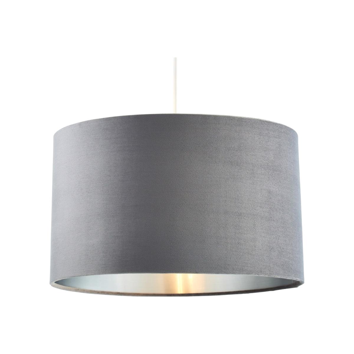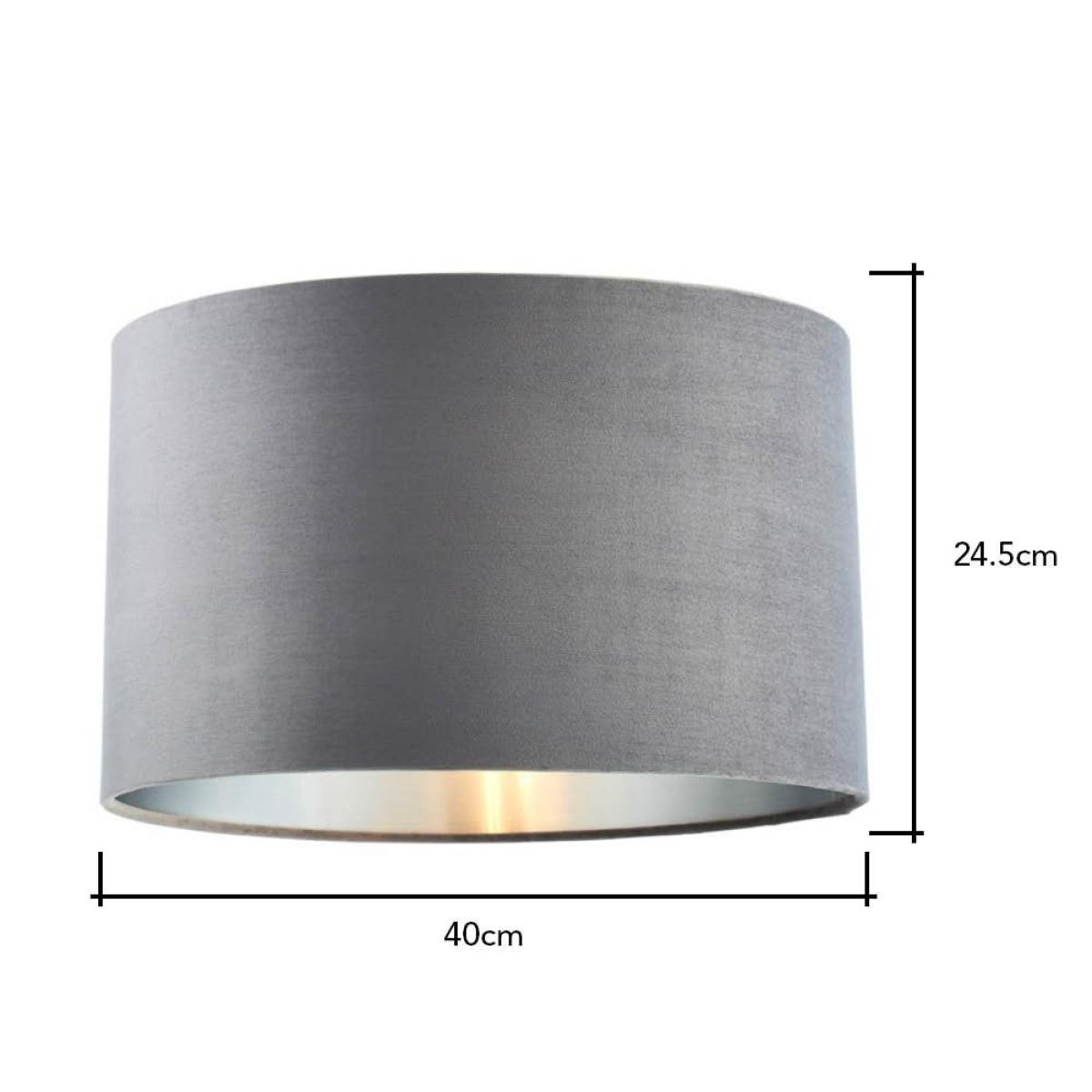 The new Velvet 40cm Shade in Seal Grey and Satin Nickel adds a glamorous look to your home, with a subtle sheen, creating a sophisticated accented feature ideal for any living room or bedroom. The Seal shade has a gorgeous, modern appearance, with a deep muted tones, creating a minimal style in any room, while the satin nickel lining within projects a natural, ambient light throughout your room. With easy-fit capability, this shade can be easily incorporated onto any pre-existing base for a quick and easy decorative touch to enhance your home interiors.