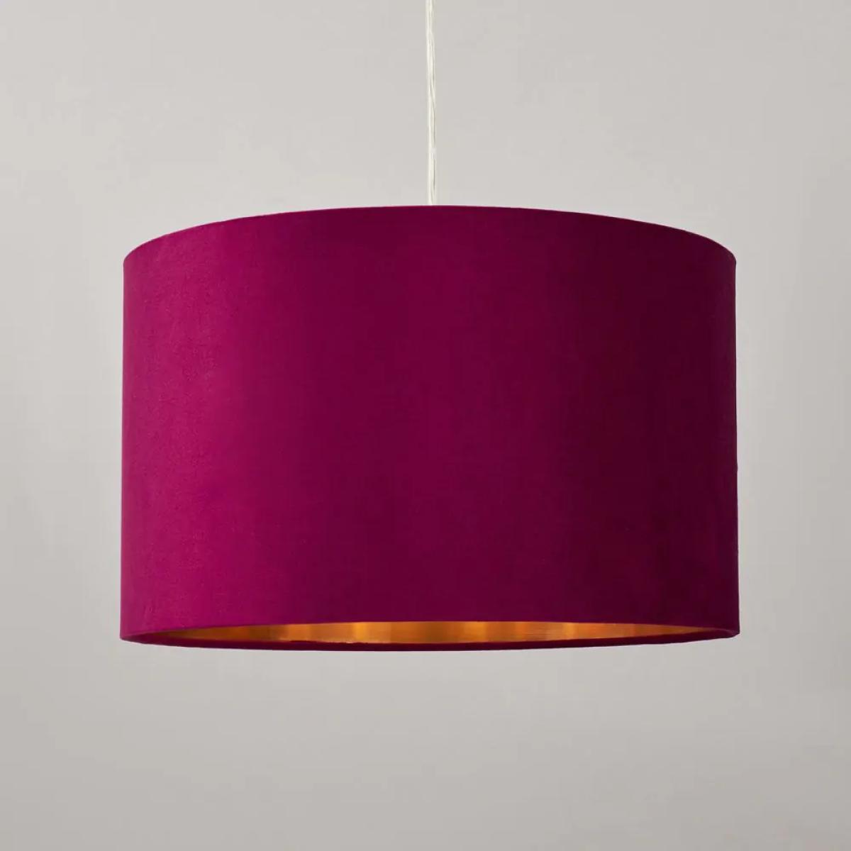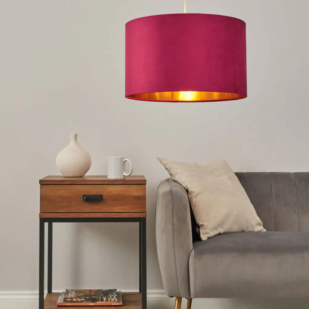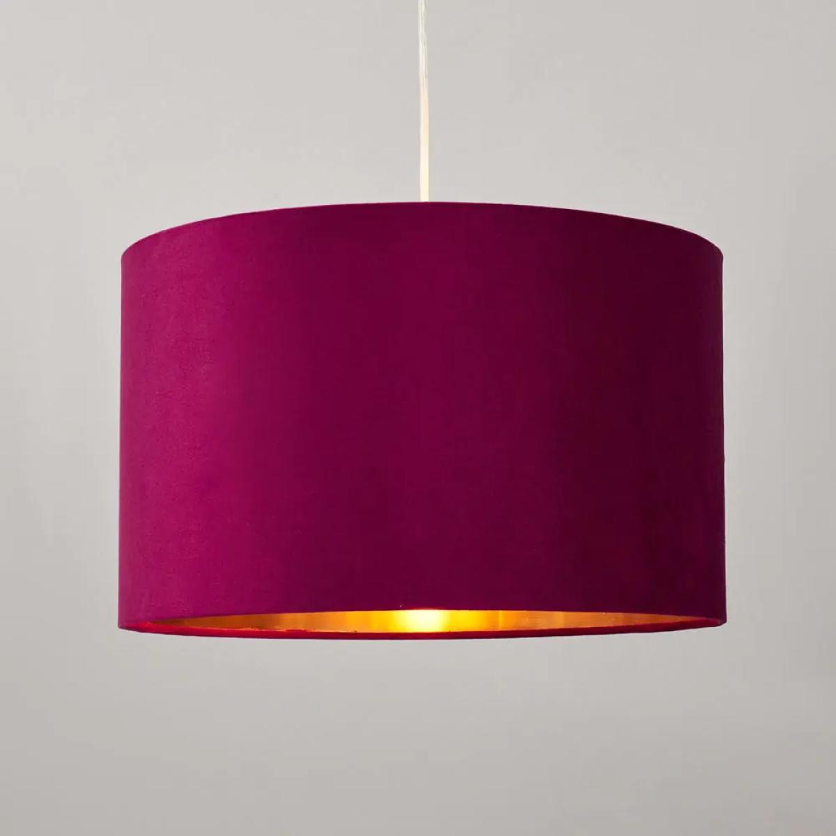 Inspire a post modern, mid-century or retro vibe in your décor with our Large Velvet Easyfit Shade. This light shade comes with a gorgeous brass lining and features a stunning raspberry red finish for a vibrant and bold aesthetic in any living room or bedroom. With an easyfit function, this shade can also be easily screwed on to any pre-existing pendant light fitting, perfect for adding colour to rented homes.