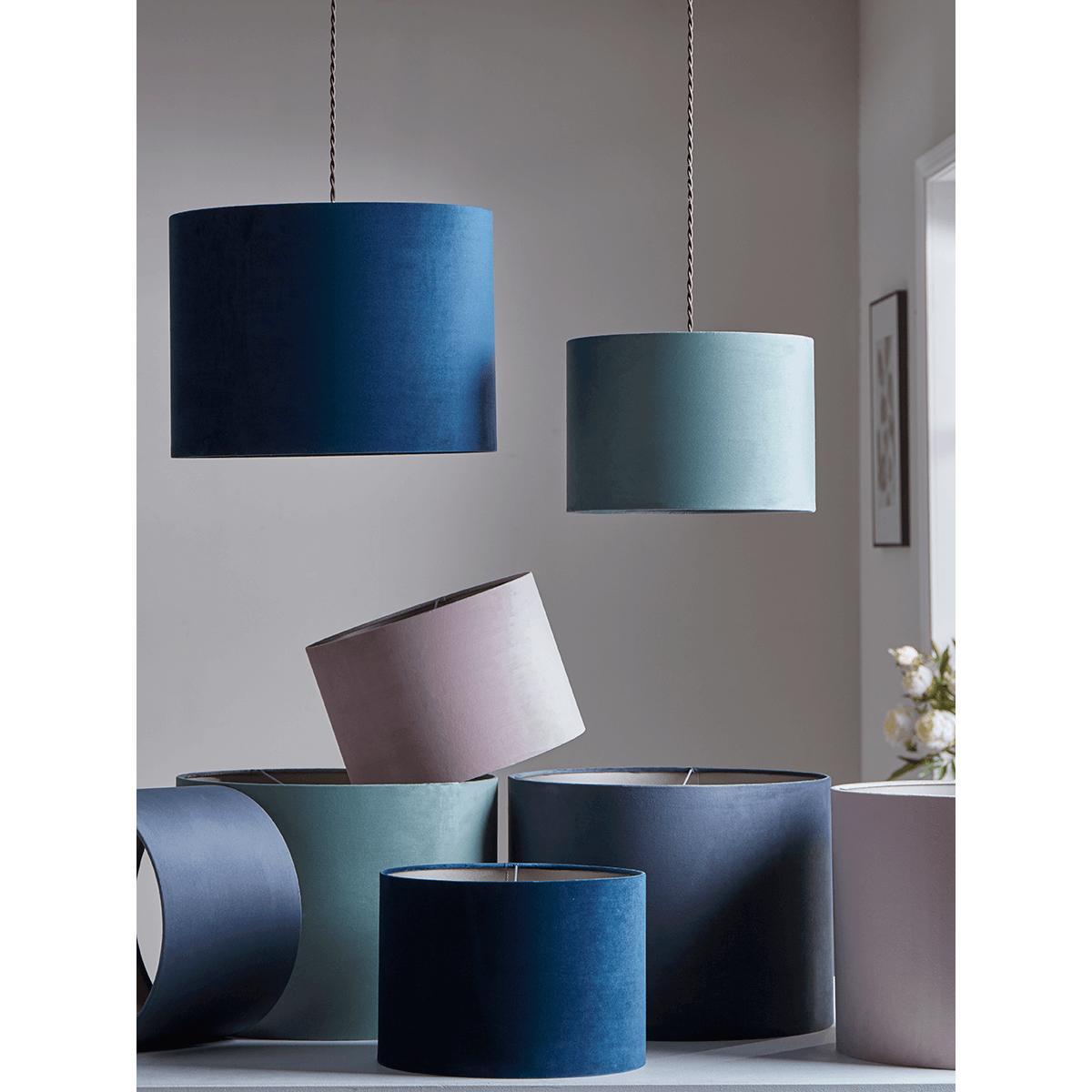 Bring a touch of elegance and sophistication to your home with our Large Velvet Shades. The shade is carefully crafted from luxurious velvet that shimmers gently when it catches the light and features a contrasting, yet complementary grey metallic inner. Our stylish and versatile lampshade will lend a tactile accent to your lamp bases or ceiling pendants. These shades are available in 4 colours, Pale Blush, Eau de Nil, Soft Grey and Deep Navy.