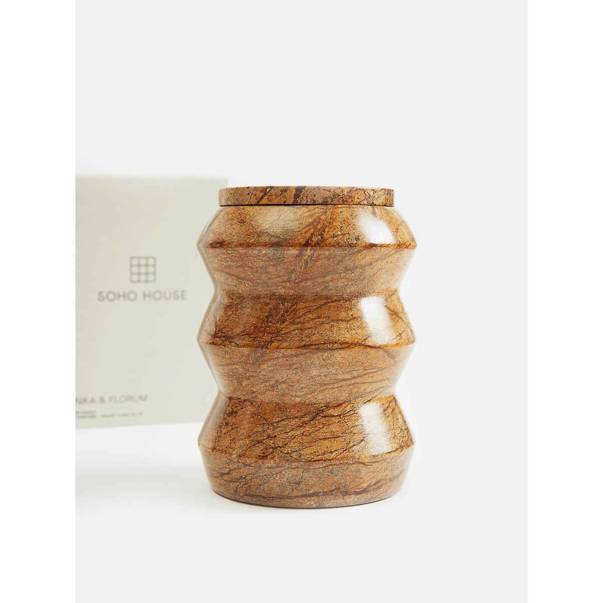 Inspired by long lunches on the Terrace at Soho Roc House in Mykonos, this candle combines bright notes of Hyacinth, Mimosa and Jasmine with an aromatic base of Tonka Bean. The wax is hand-poured into our Verona vessel, which is handcrafted in India from brown Bidasar marble. Natural variations within the marble make each one unique, and a standalone feature for a mantelpiece or bookshelf in your living space. Scent notes Top: Hyacinth Middle: Mimosa Base: Tonka Large candle with Tonka & Florum fragrance Solid marble vessel with natural variations Vessel crafted in India Candle hand-poured in England Vegan-friendly blend of mineral and vegetable wax Vessel can be reused as storage once empty