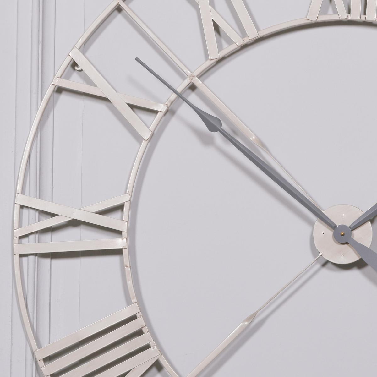 Enhance the charm of your chic living room, bedroom or office with this Vintage Cream Frame Wall Clock showcasing Roman Numerals. The clock boasts a distressed metal finish and pale grey clock hands, while the center of the face has been designed with a twist to add an extra element of interest. It's a perfect addition that elevates the aesthetics of any space.