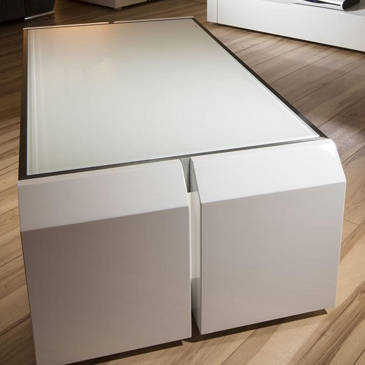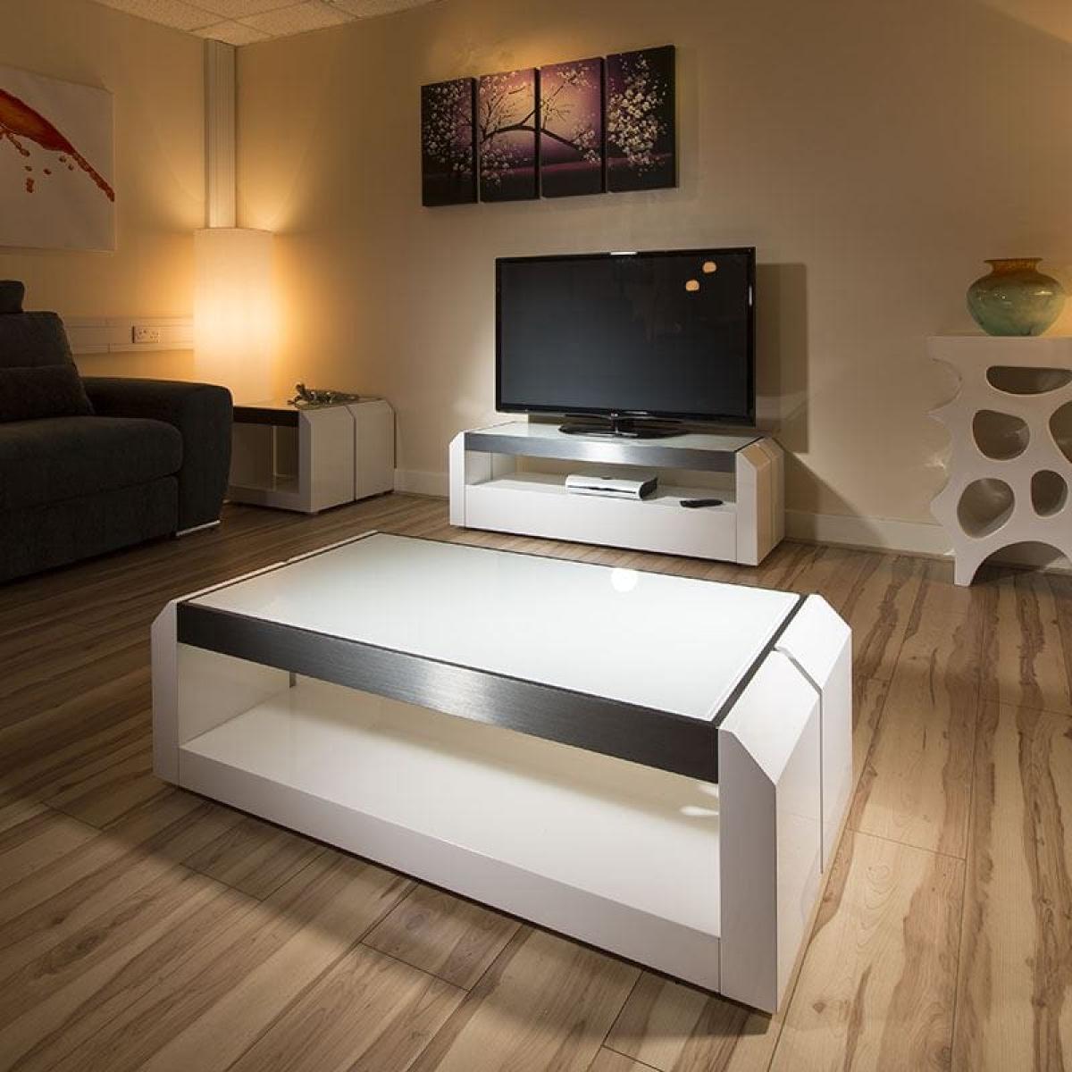 Quatropi's 701. A White Coffee Table is from a full range of Living Room Furniture. Featuring Aluminium trim and pure white glass top. Superb quality and strength from this unique design. W120cm D60cm H38cm High Gloss Finish Matching Items Available