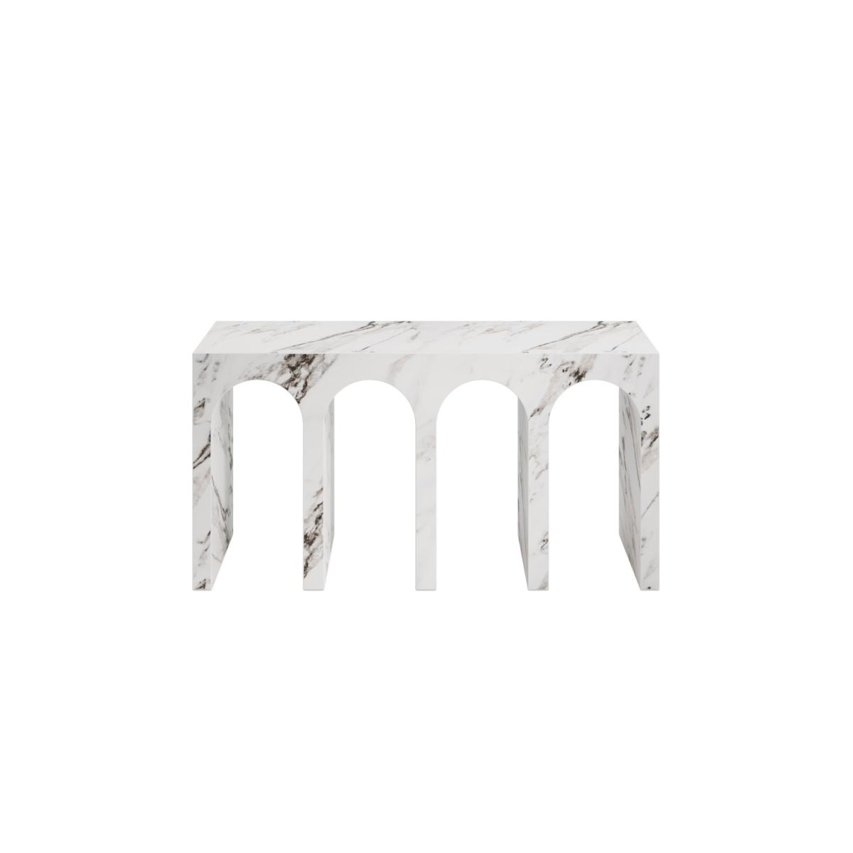 Adds a luxurious and timeless look to your space, mimicking the beauty of natural marble. Offers a modern, elegant silhouette that enhances the visual appeal of any room. Provides a sleek, understated surface that complements a variety of interiors. Serves as a bold statement piece, making it a striking focal point in any room. Ideal for entryways, living rooms, or hallways, bringing both style and functionality to your home. The Archie Console Table is a stunning piece that blends contemporary design with timeless elegance. Featuring a striking Calacatta marble effect and a modern arched silhouette, this console table makes a bold statement in any room. The matte finish enhances its sleek and sophisticated look, while its large size ensures it serves as a focal point in your space. Perfect for entryways, hallways, or as an accent piece in your living room, the Archie Console Table adds a touch of luxury and modern flair to your home decor. Dimensions: W150 x D40 x H76 cm Material: Concrete Finish: Matte Colour: White Assembly required: No Weight: 52.12 kg Maximum supported weight: 120 kg Packed dimensions:W49 x D157.2 x H84.5 cm