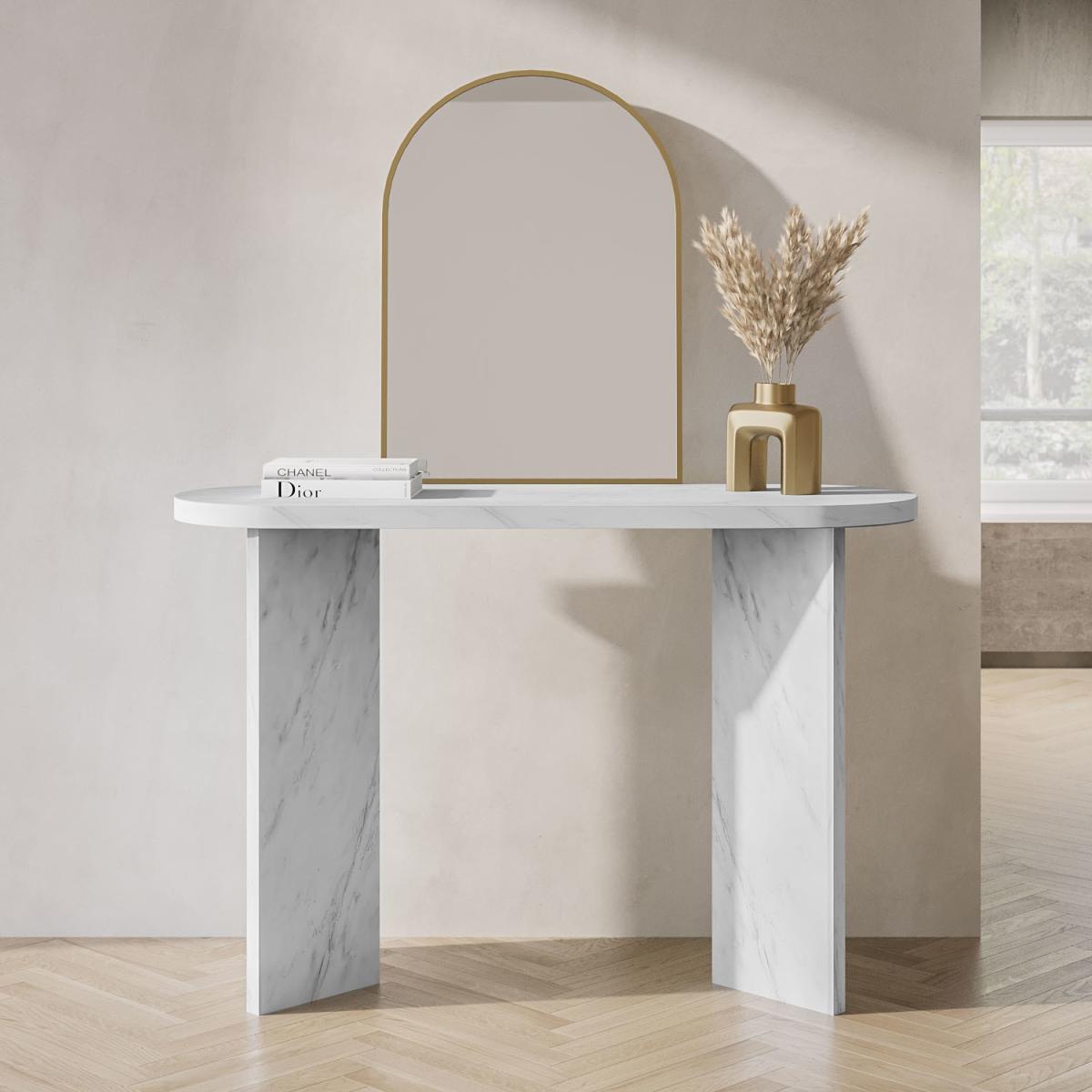 I’m a fan of the Geneva console for its clean lines and convincing marble-look finish - it feels luxe without the weight (or price) of real stone. Its simple form works beautifully in modern, Scandi or pared-back mid-century spaces, and the neutral white marbling makes it easy to layer with colour or texture. For styling, keep the top relatively clear - a slim tray for keys, a stack of design books and a single sculptural vase or lamp look chic without overwhelming the form. Pair it with a round mirror above to soften the straight edges and instantly lift any hallway or living area.
