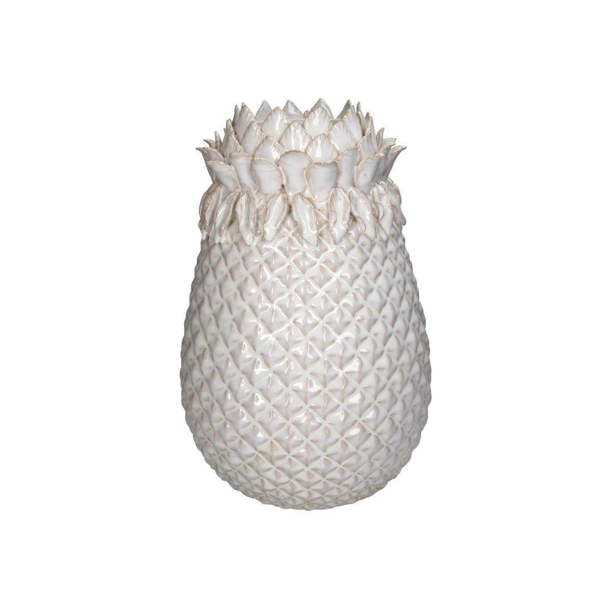 A symbol of hospitality — with a touch of whimsy. This handmade stoneware vase takes the classic pineapple motif and transforms it into a bold, sculptural centrepiece. Its soft white glaze catches the light beautifully, while the hand-textured surface adds organic charm.. Whether styled with flowers, displayed solo, or paired with its smaller sibling, the Large White Pineapple Vase is made to bring joy, texture, and a little wink of summer into any room.. Each one is hand-glazed in small batches, meaning no two are exactly alike.. Why You’ll Love It. Oversized pineapple silhouette — playful, elegant, and unexpected. Handcrafted from stoneware with a soft matte-white glaze. Perfect as a flower vase or sculptural home object. Statement-making but neutral enough for any room. Made in LA, shipped with care from London