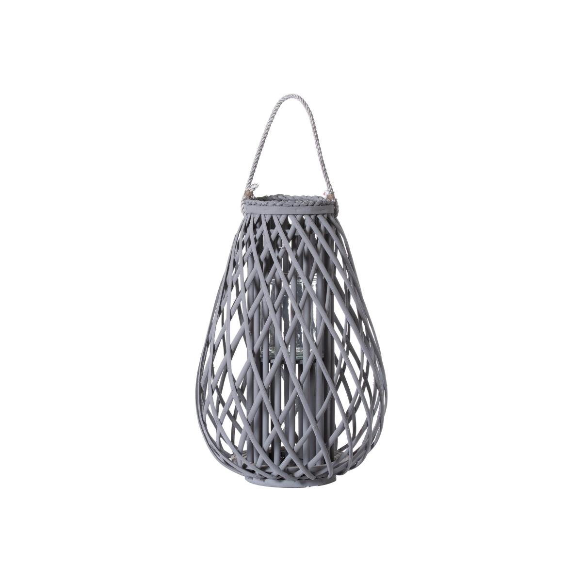 Large Wicker Bulbous Lantern Rustic Light - Grey