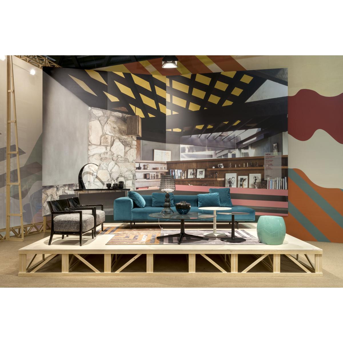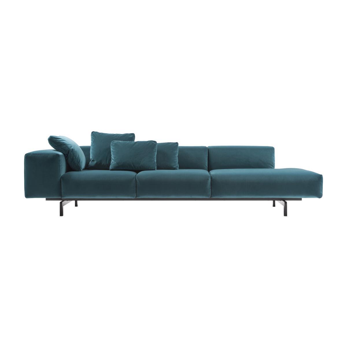 Signed by the famous Italian designer, Piero Lissoni, Largo is a sofa with a very designer fashion spirit. The essential lines highlight the luxurious velvet coating from Kartell's latest textile research. This silky, velvety and warm, high-end range fabric embodies a refined and glamorous spirit. The intense and vibrant colour brings a friendly and cosy note to our interiors. Largo sofa combines comfort, refinement, material quality and impeccable finishes. Largo has an original construction: there is no structure around the cushions. The broad cushions themselves design the clearly defined lines of the sofa. The 7 large cushions are all attached underneath to a thin black steel platform. The black lacquered steel legs are very graphic. This 3-seater model sofa has only one armrest on the left (when facing the sofa). The platform on the right has a half-backrest. Largo collection includes many sofa models allowing for a multitude of configurations. Largo is available in straight or corner sofa, with or without armrests, in a many sizes (from the smallest to XXL sofa), in a wide variety of fabrics, from the most sober to the most eccentric. Largo collection also includes small flying cushions to be combined so as to decorate the seat of the sofa. Your personal adviser is at your disposal for any additional information: personalshopper@madeindesign. Com The 6 small flying cushions arranged on the seat (seen on the photo) are not included (the small flying cushions are sold separately).