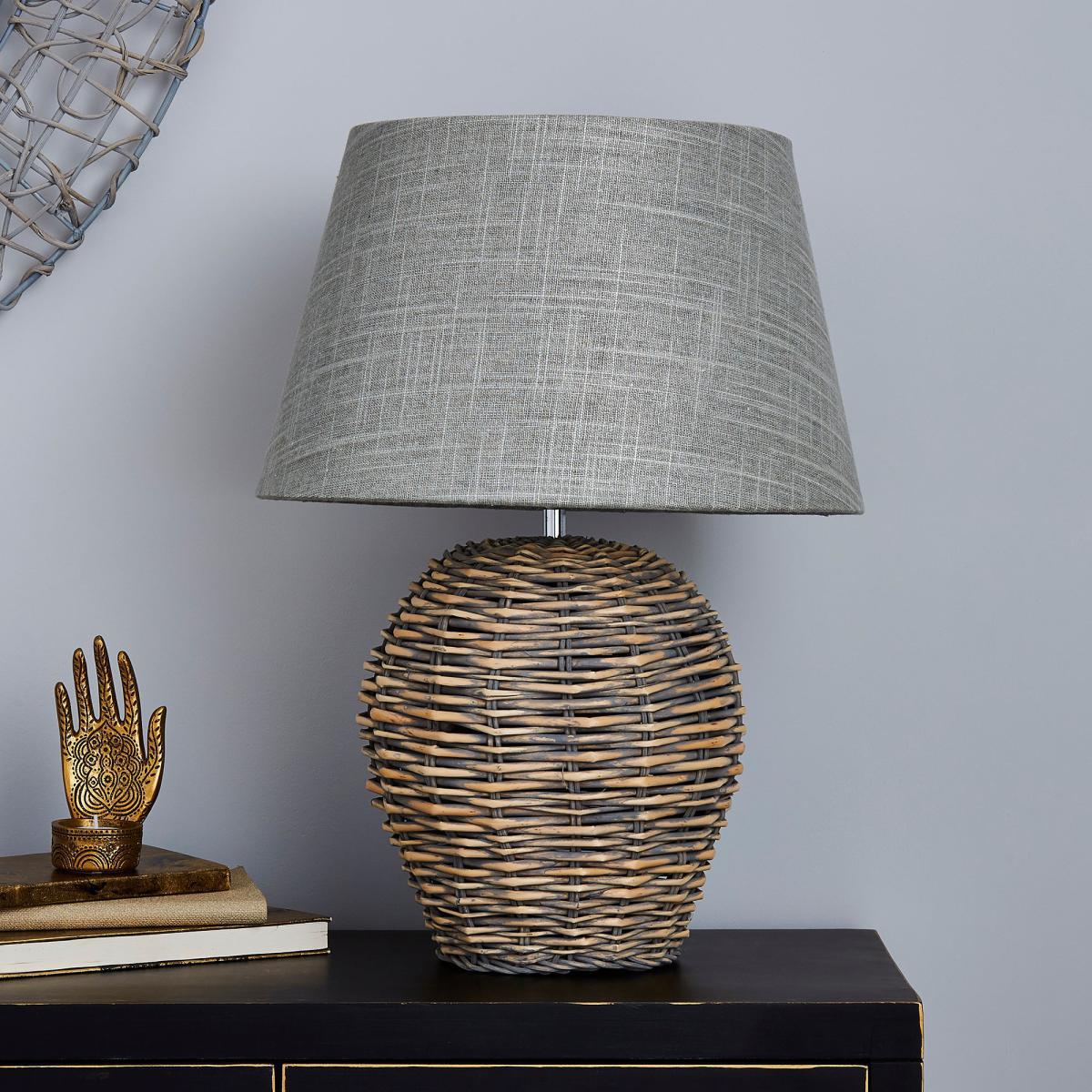 Bring a homely touch to your home with this Lari split weave table lamp, complete with a grey shade. Please note: This light does not come with a bulb.