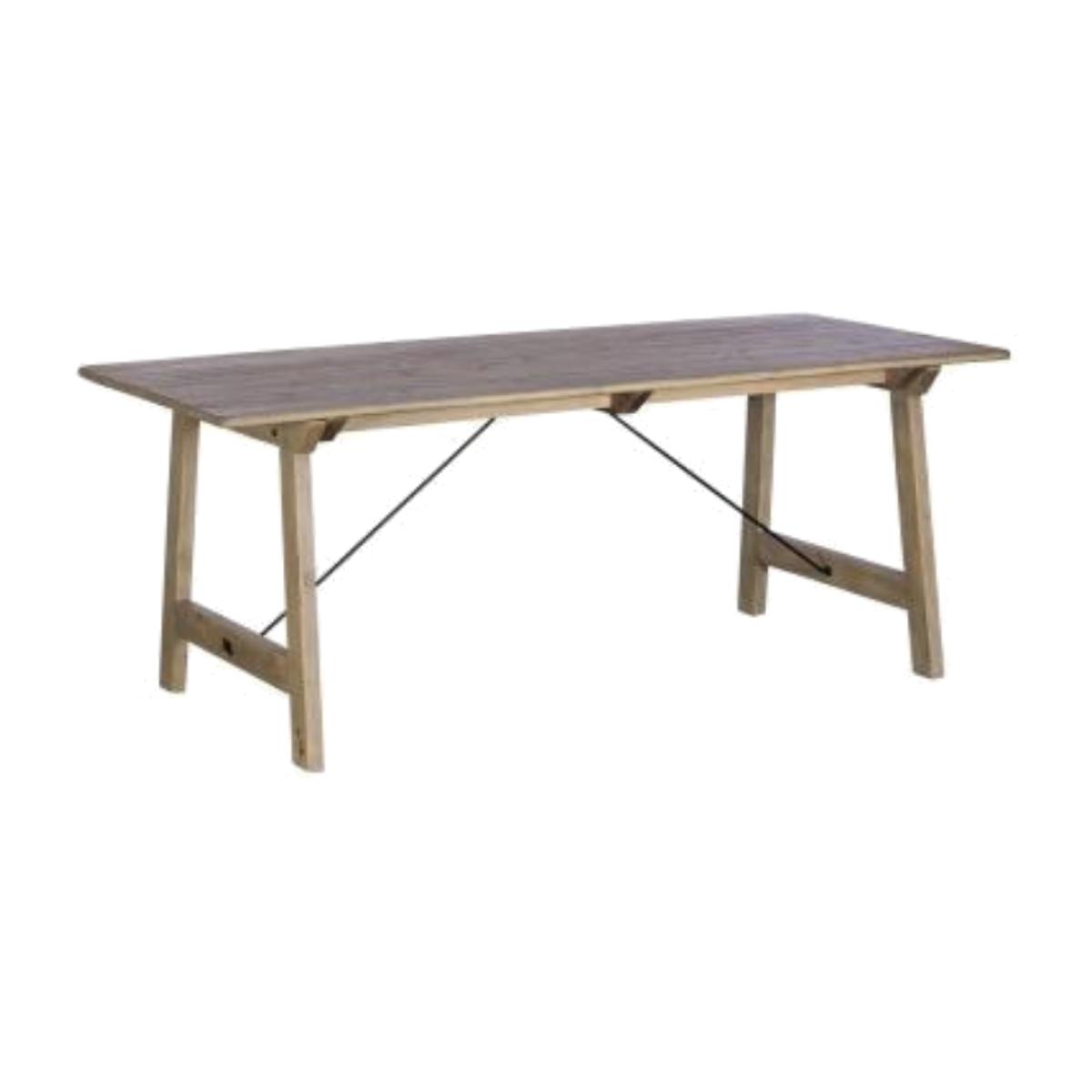 I love this table for its rustic, reclaimed look that adds warmth and character to a variety of interiors. It works particularly well in open-plan kitchens, farmhouse style spaces, or relaxed family rooms. Its natural wood finish and sturdy build make it practical for daily use, while also serving as a beautiful statement piece. To style it effectively, consider pairing with a mix of modern and vintage accessories-think simple pendant lighting above and some layered textiles or botanicals to soften the look. For a more contemporary interior, balance the rustic charm with sleek chairs or minimalist tableware. Overall, this table offers versatility and durability, making it a timeless addition that can be adapted to different decor styles.