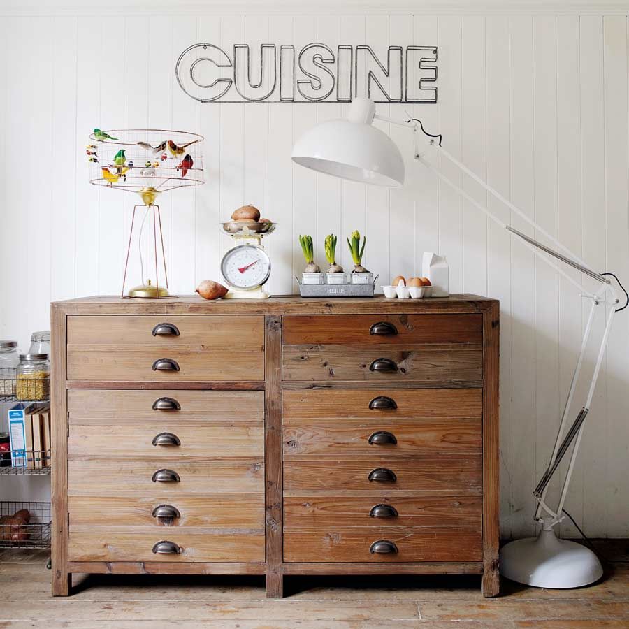 The Larkin pine sideboard has a distinct draftsman chest design. With fourteen faux drawers, the unit comprises two deep drawers at the top and two large cupboards in the bottom each with a single central shelf. This is clever, functional storage at its most stylish.;Psst, click here to download our handy guide to check if your new furniture will fit correctly into your space before you order.