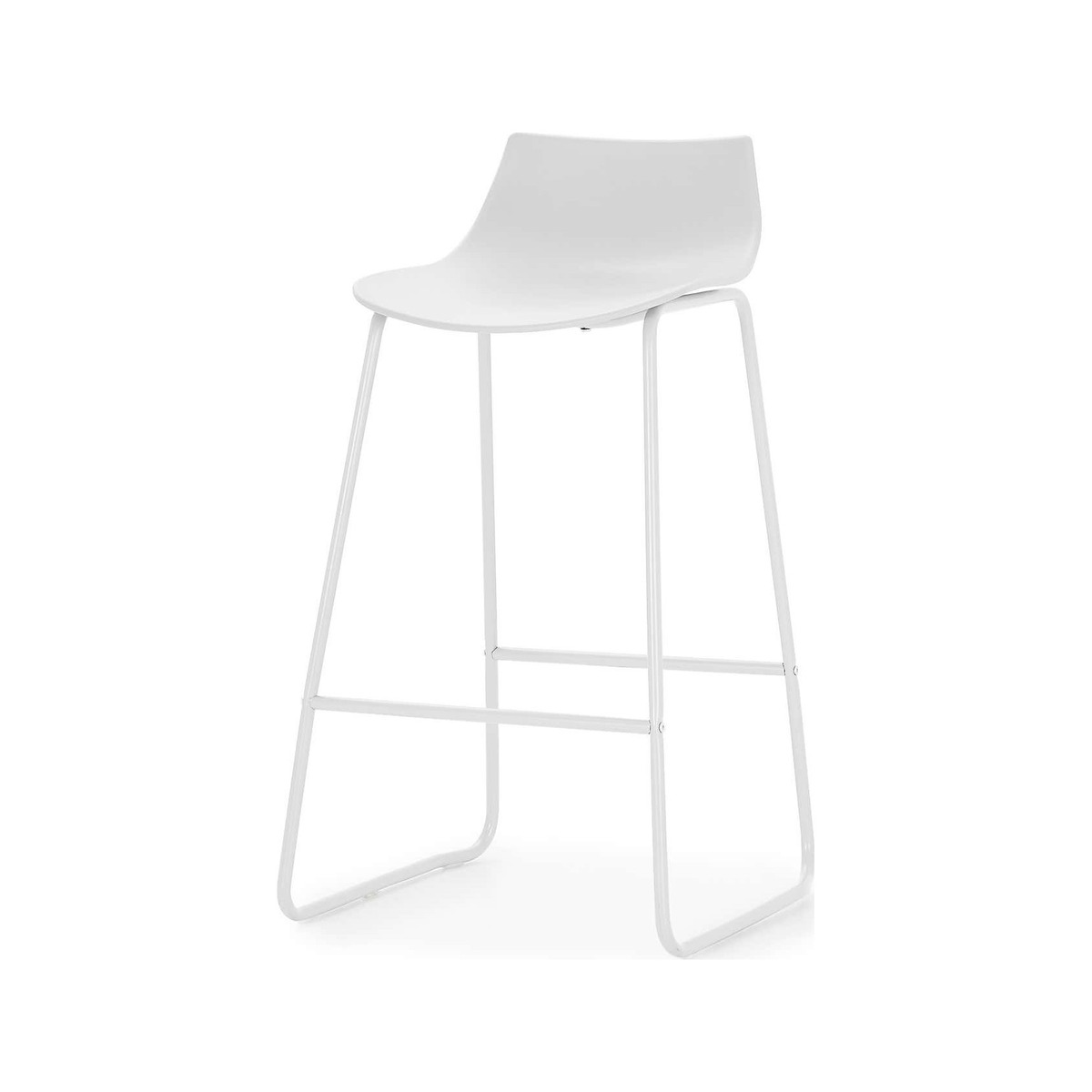 Finished in a stylish white colourway, the Larkyn bar stool offers a minimalist design, perfect for adding a clean look to your kitchen. Complete with a sculpted plastic seat with a low profile backrest, this modern stool features a sturdy steel frame complete with scratch-resistant paint, making it perfect for busy households.