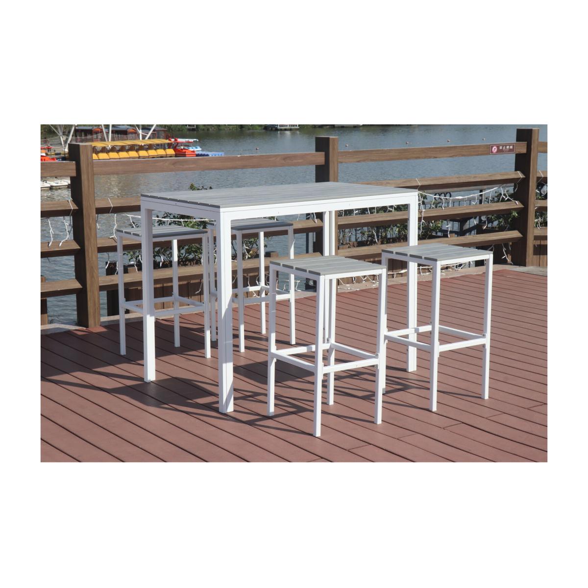 Sleek and modern, this Larrisa 5 Piece Bar Set is a bright and visually striking patio furniture set that is guaranteed to impress. Perfect for al fresco dining, catching up with friends or hosting garden parties, this fantastic furniture set has a sturdy aluminium frame and trendy wooden slats. With a contemporary design that will look fantastic in any garden, patio or decking, the table provides plenty of room for serving up refreshing drinks and delicious snacks. Larrisa 5 Piece Bar Set - White
