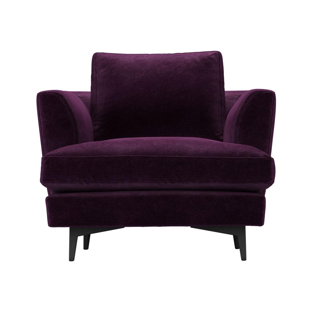 I love this armchair for its rich plum hue and irresistibly soft velvet finish, which adds a touch of luxe to any space. It works particularly well in contemporary or glam interiors, but can also inject elegance into more eclectic or vintage schemes. To style it effectively, consider pairing with neutral or metallic accents to make the colour pop, or add patterned cushions for texture and visual interest. It's a versatile choice for living rooms or reading nooks, where comfort and style come together, and its compact size makes it an ideal statement piece without overpowering the space.