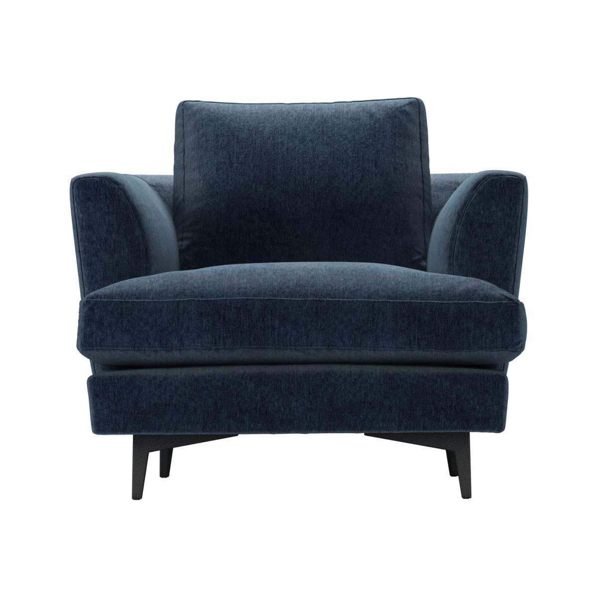 I love this armchair for its bold, artistic vibe, thanks to the Portland Blue Brushstroke fabric. It works really well in contemporary interiors, especially when paired with neutral tones to make the colour pop, or mixed with other vibrant hues for a lively, eclectic feel. Practical styling tips include layering with cushions in contrasting textures or colours to add visual interest, and placing it in a cosy nook or set against a statement wall to highlight its design. Its supportive yet comfortable form makes it a versatile piece that can work equally well in living rooms, reading corners, or even stylish home offices.