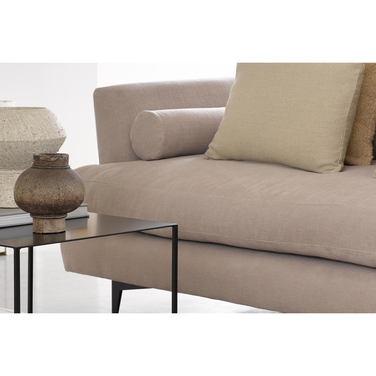 I love this corner sofa for its clean, modern silhouette and the natural elegance of the Belgian linen upholstery, which adds a soft, tactile quality to any living space. It works particularly well in contemporary or Scandi-inspired interiors, where its subtle tailoring and understated charm can shine. For styling tips, consider adding textured cushions or throws in neutral or muted tones to enhance its relaxed but refined feel. Pairing it with light wooden or monochrome accents will keep the overall look fresh and inviting. Its open-ended design also makes it a practical choice for open-plan living, encouraging conversation and creating a cosy corner without feeling bulky.