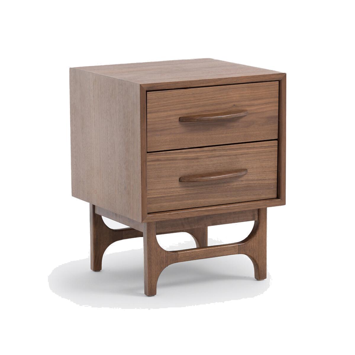 The charm of vintage style, the elegance of walnut and neat finishes. The Larsen bedside table combines design and functionality, setting a stylish tone. Designed by La Redoute Interiors. Product Details • 2 drawers with metal slidesDimensions. Overall • Width: 43cm • Height: 55cm • Depth: 40cm • Height of legs: 20cm • Weight: 15.5kg. Usable space • Drawers : L34 x H14 x D31cmDelivery:. Delivered preassembled (only feet to fix).Note! Please check that all access points are large enough to accommodate your delivery (doors, stairs, lifts). • WOOD FROM SUSTAINABLY MANAGED FORESTS. FSC® certified wood comes from forests that are environmentally, socially and economically well managed. Dimensions and weight of parcel1 parcel • L51.5 x H46 x D51.5cm. 18.5kg.