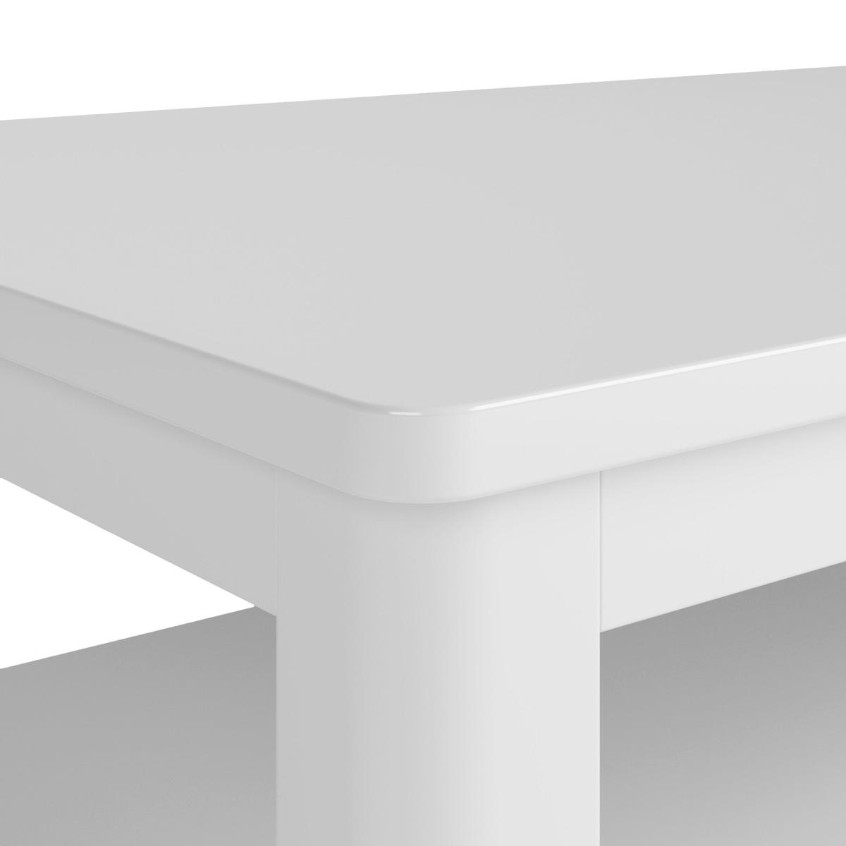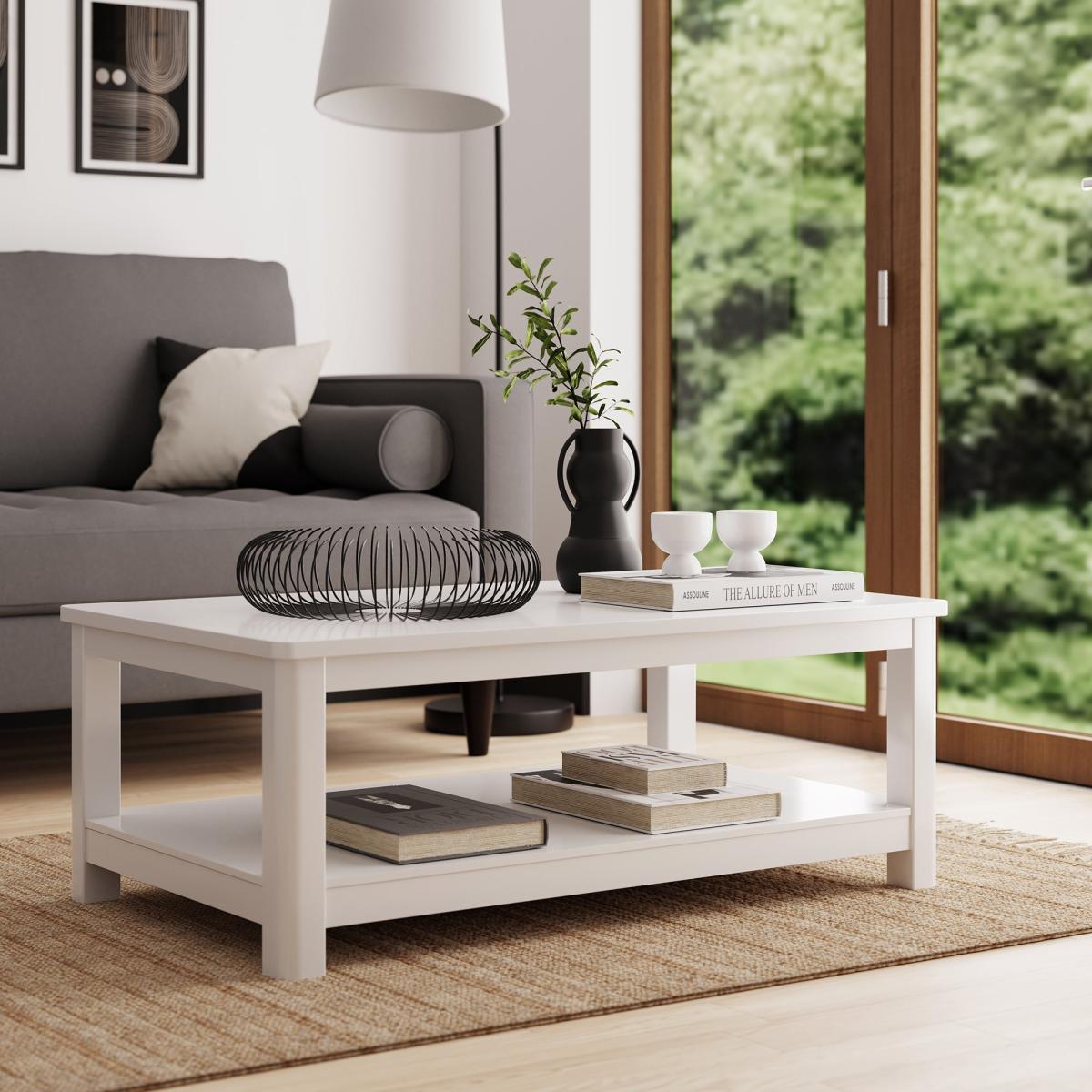 I really like this coffee table’s clean, minimalist look-it’s versatile enough to work well in both modern and Scandi-inspired interiors. The white finish makes it an ideal base for styling with colourful accessories or textured items, helping to brighten up a living room. Practical tips include using the lower shelf for books or storage baskets to keep the top surface clutter-free, especially in smaller spaces. Its sturdy build makes it suitable for everyday use, and pairing it with a soft rug underneath adds warmth and defines the seating area effectively. Overall, it’s a functional piece that offers simplicity and style in one.