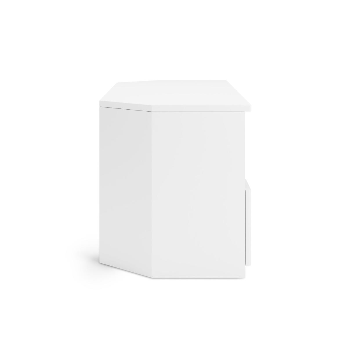 I love the simple, clean lines of this white corner TV unit - it’s a versatile piece that works well in both minimalist and contemporary interiors. Its compact, corner-design makes it ideal for making the most of smaller living spaces, while the white finish keeps it light and airy. For styling, consider adding a few tactile accessories like textured bowls or small potted plants to prevent it from looking too clinical. It pairs well with other neutral tones or can act as a backdrop for pops of colour in artwork or soft furnishings. Practical tip: utilise the open shelves for storing media devices and decorative items, keeping surfaces clutter-free and visually balanced.