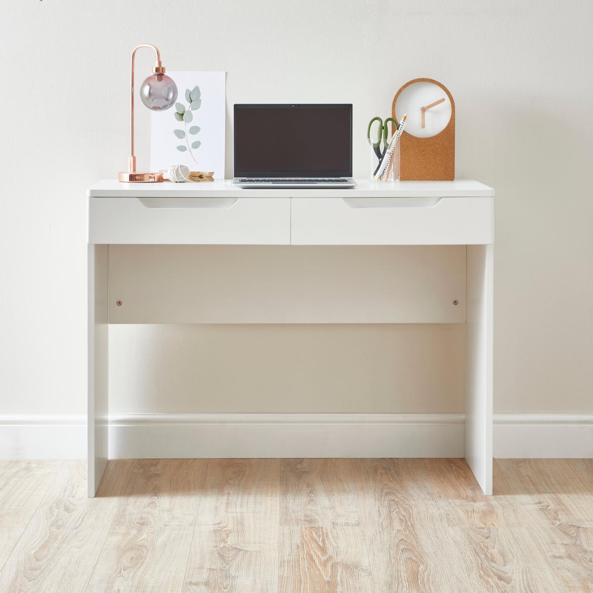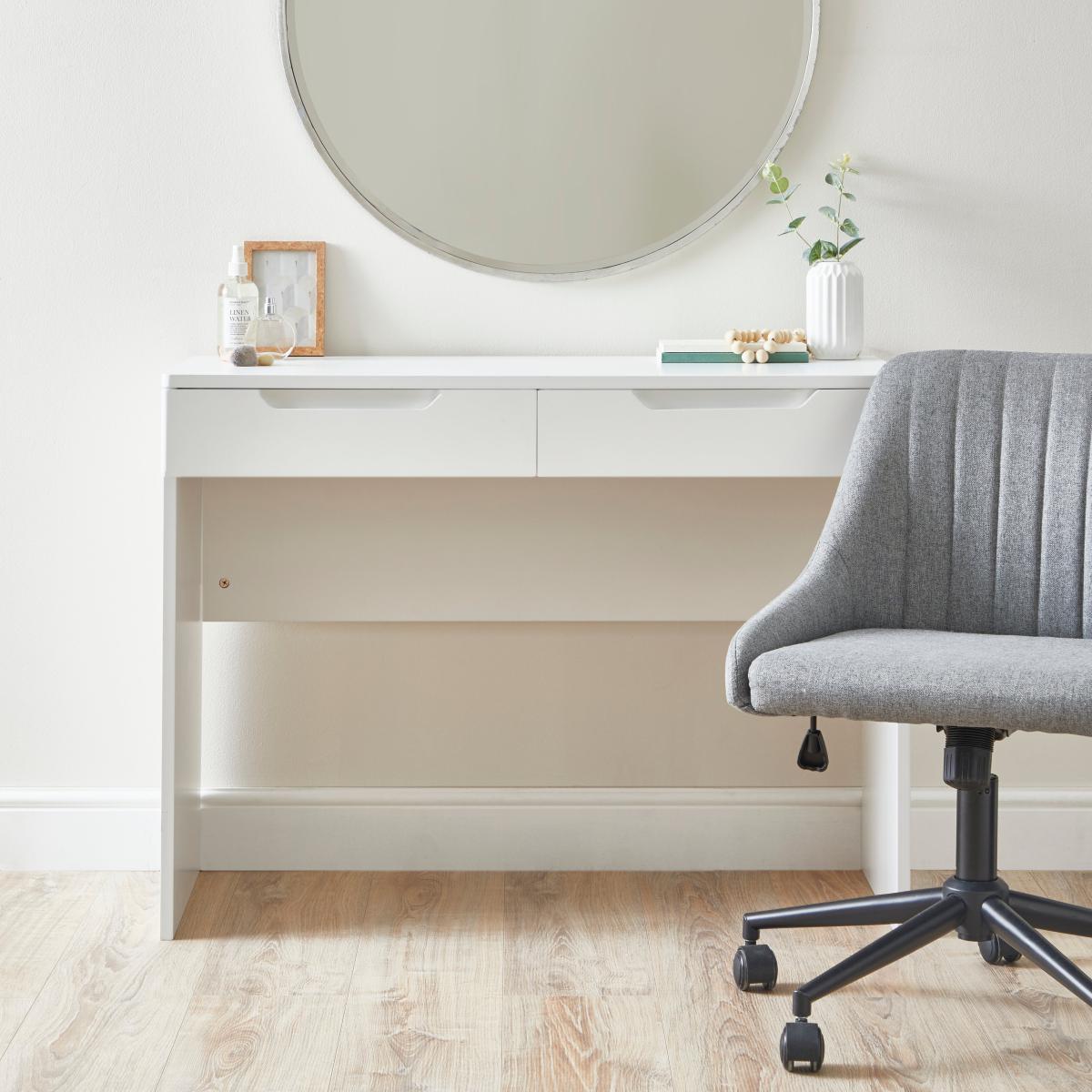 Bring the Larson range into your home with this beautiful white dressing table that brings both modern styling and practicality. With a groove handle design, this dressing table has 2 drawers, requires self-assembly and can be used as either a desk or dressing table, making it an extremely versatile piece.