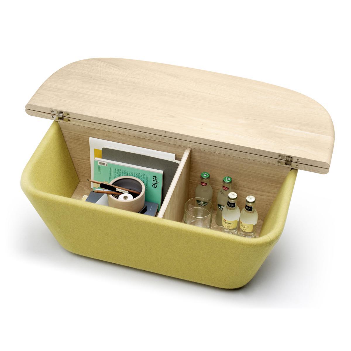 Lasai Coffee table - Container - Oak & fabric - L 94,5 cm by Alki Yellow/Green/Natural wood