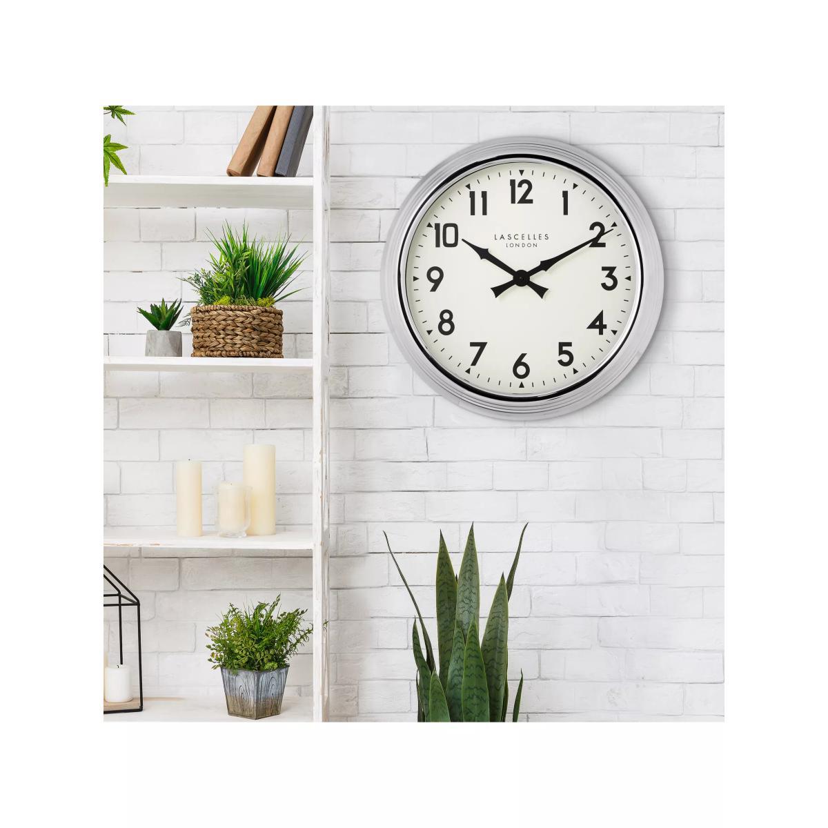 Made with a classic Lascelles dial, this large analogue wall clock has a high-quality metal casing and easy-to-read black Arabic numerals with matching decorative clock hands.