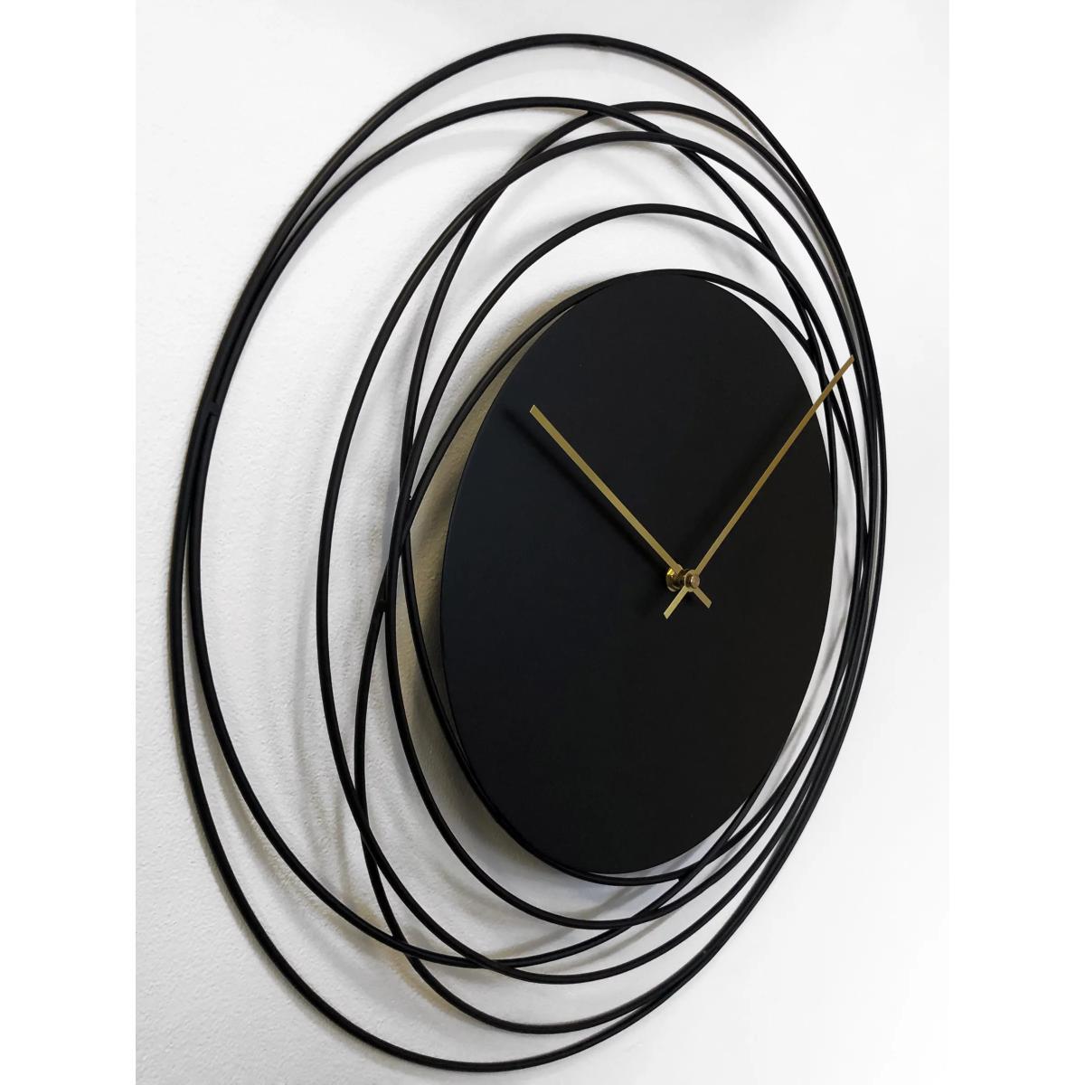 A contemporary design and statement piece for a wall, this Lascelles clock is framed by over-lapping metal wire circles with a matt black finish. The round analogue clock is completed with contrasting gold-toned hands on the open clock face.