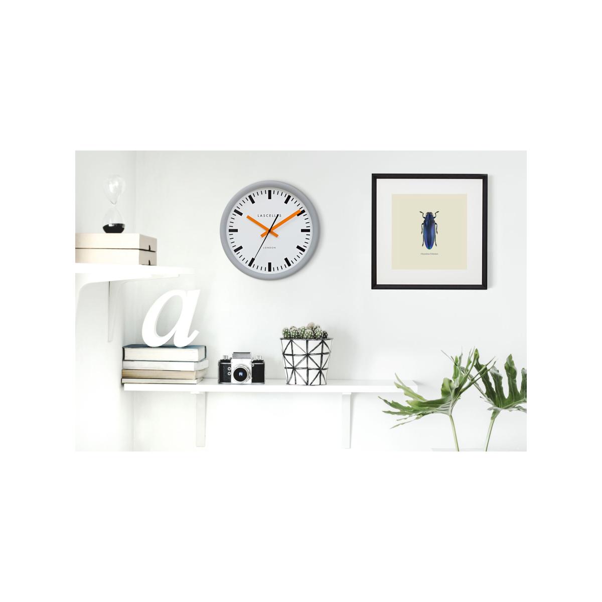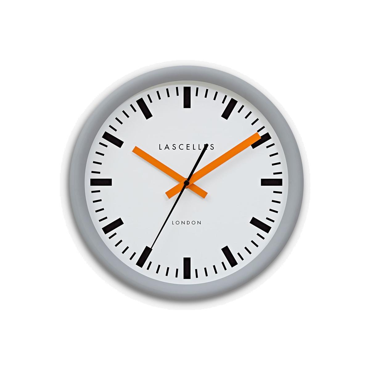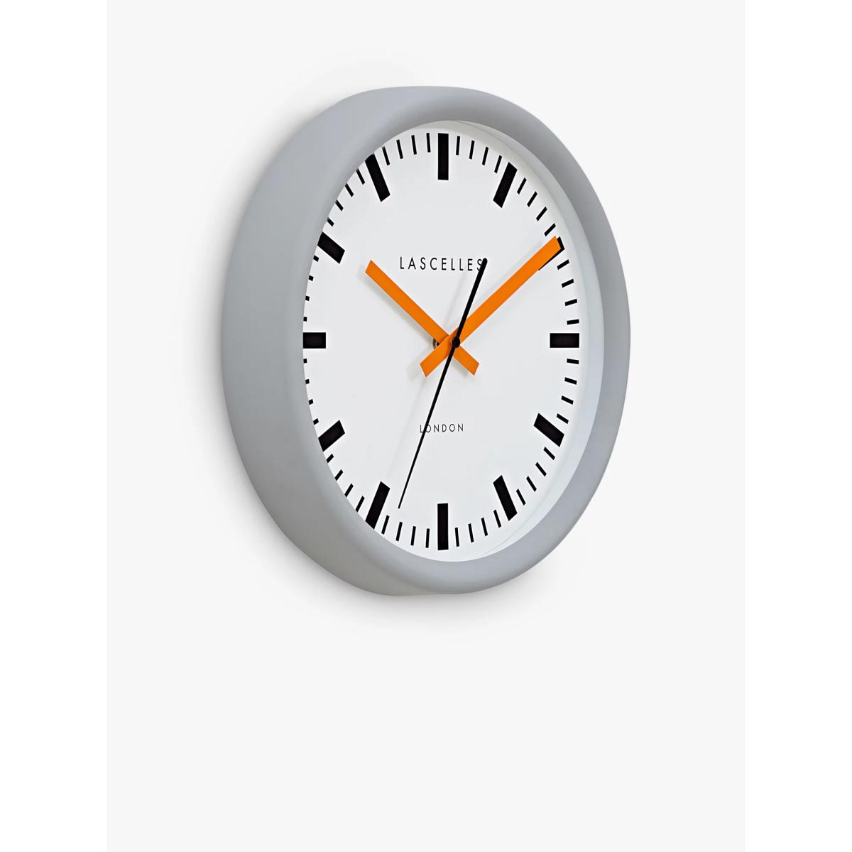 Lascelles Swiss Station Silent Sweep Wall Clock, 30cm, Grey/Orange