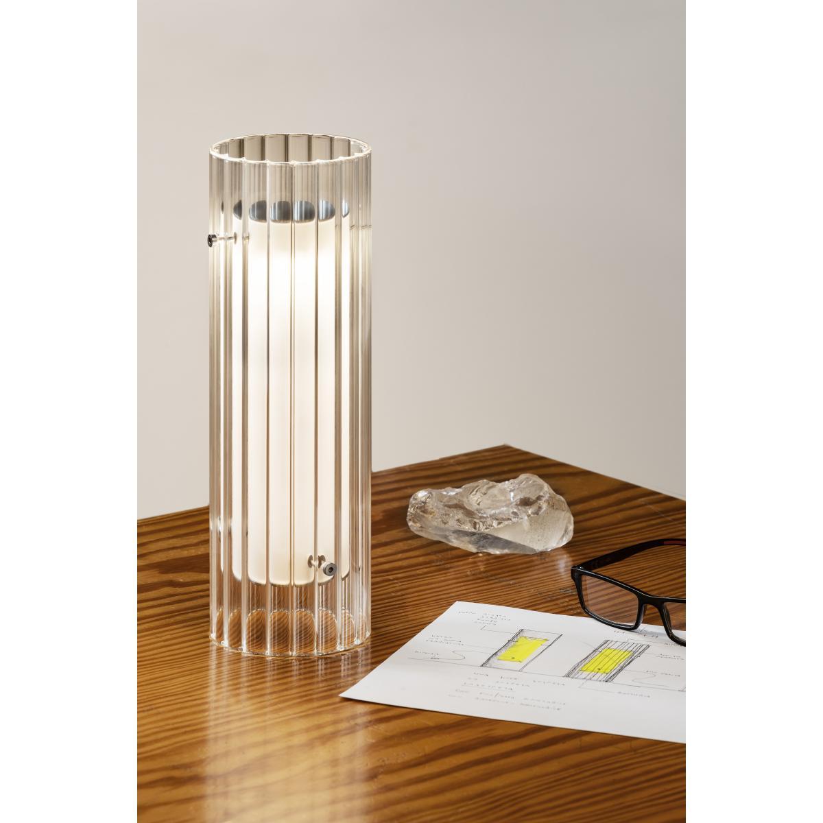 I love this sleek lamp because of its minimalist yet sophisticated design; the clear glass and subtle grey finish make it versatile for both modern and contemporary interiors. It works particularly well in living rooms, bedrooms, or even as a stylish bedside light, adding a touch of understated elegance. When styling with this lamp, consider pairing it with neutral or monochrome tones to highlight its clean lines or using it as a contrast piece in more vibrant settings. Practical tips include placing it on a side table or console for ambient lighting, or stacking a few to create visual interest. Its understated form makes it easy to incorporate into various spaces without overwhelming the overall decor.