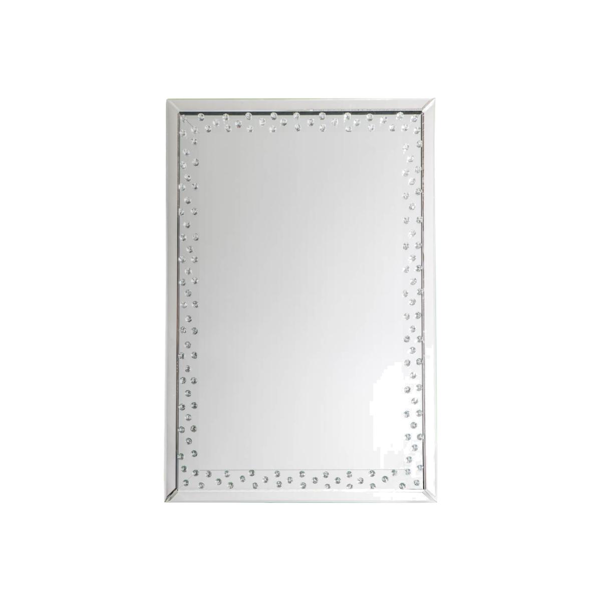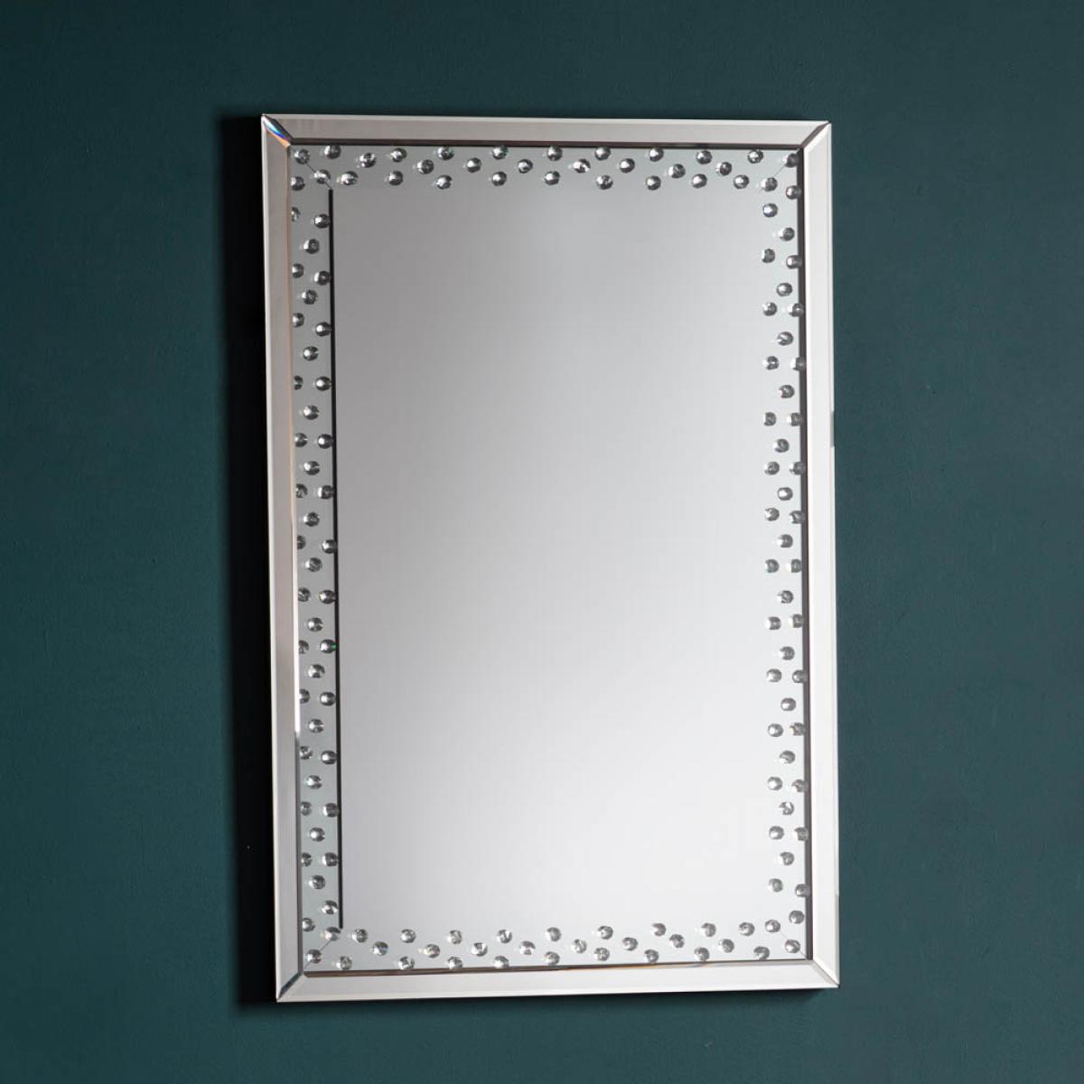 Add a sparkle to a wall with the stunning Laspra mirror which features a frame of bevelled mirror pieces inset with a jewelled effect. Other sizes also available. Shape: Rectangle. Material: Glass, MDF, Plastic. Colour/Finish: Silver. Mount Type: Wall.