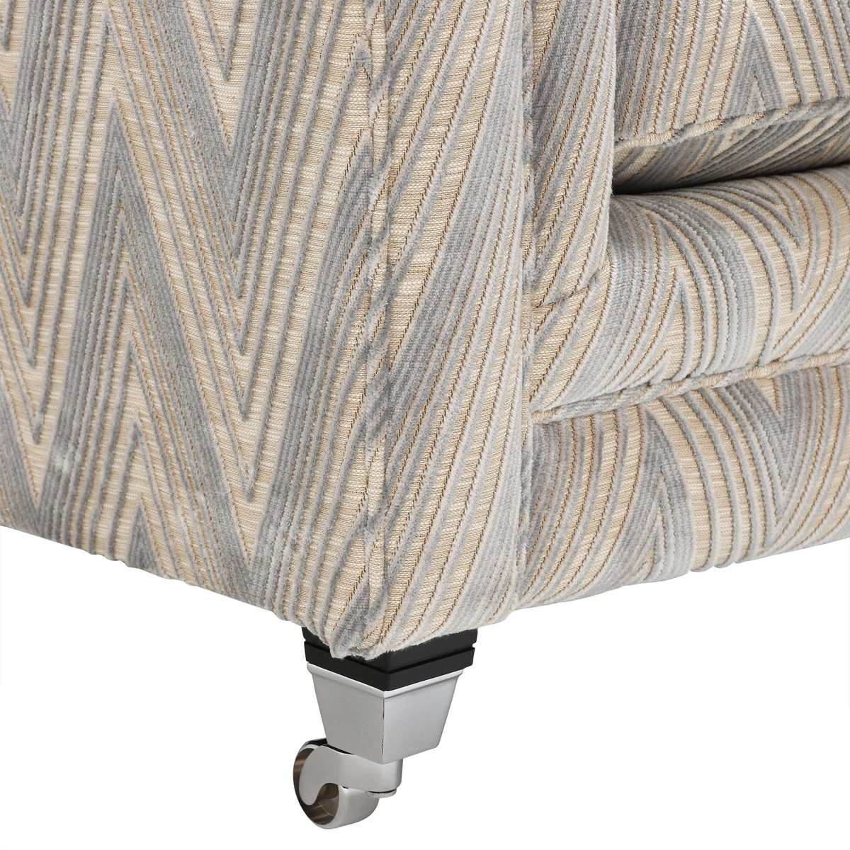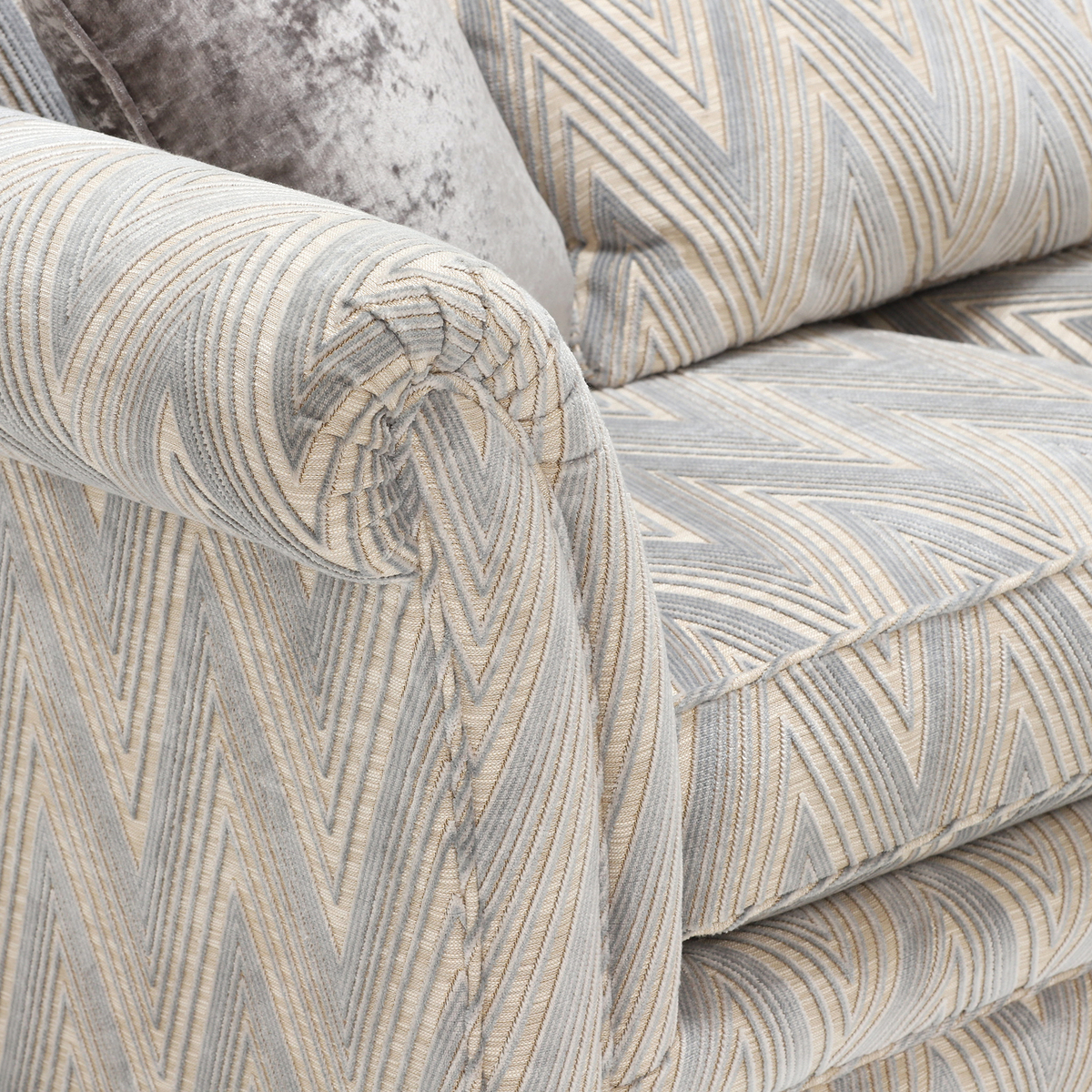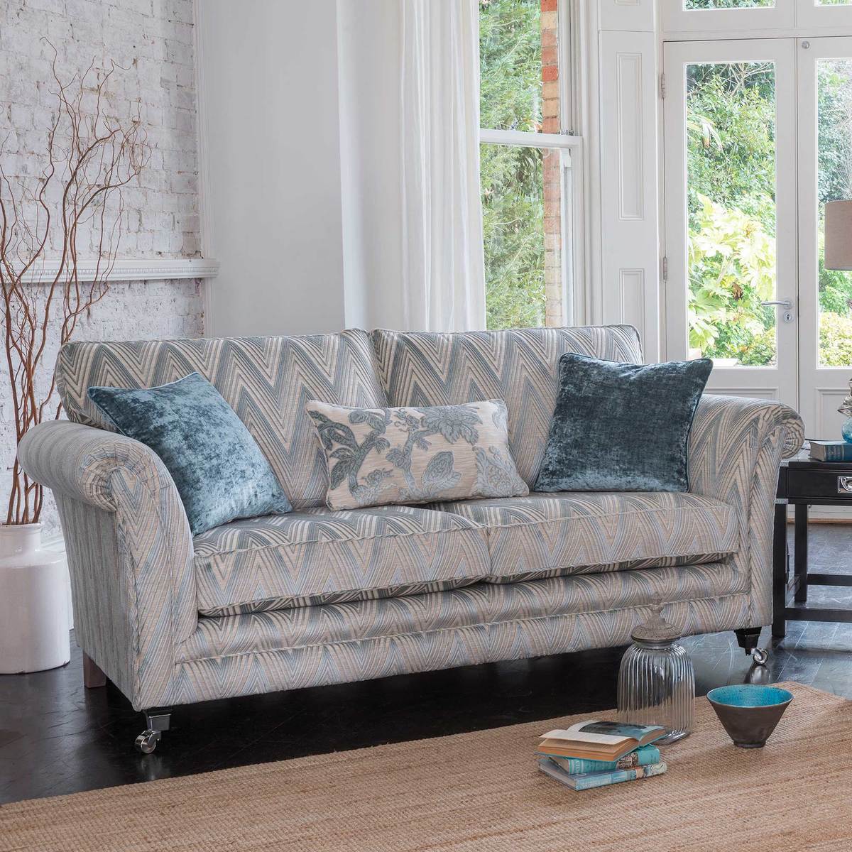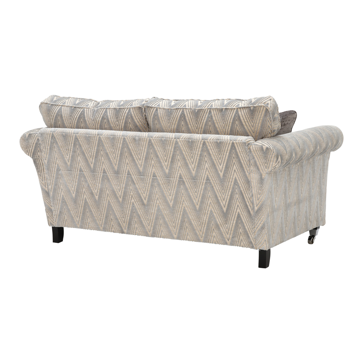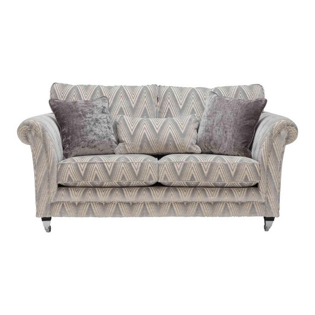The Lassington two seater sofa features classic scrolled arms and is beautifully upholstered in a contemporary chevron design fabric adding an up to date twist. The foam filled seat cushions and fibre filled back cushions offer a medium supportive sit and require minimal maintenance. With a choice of foot style and finish you can easily create a timeless and unique sofa for your home. Coordinating pieces available.