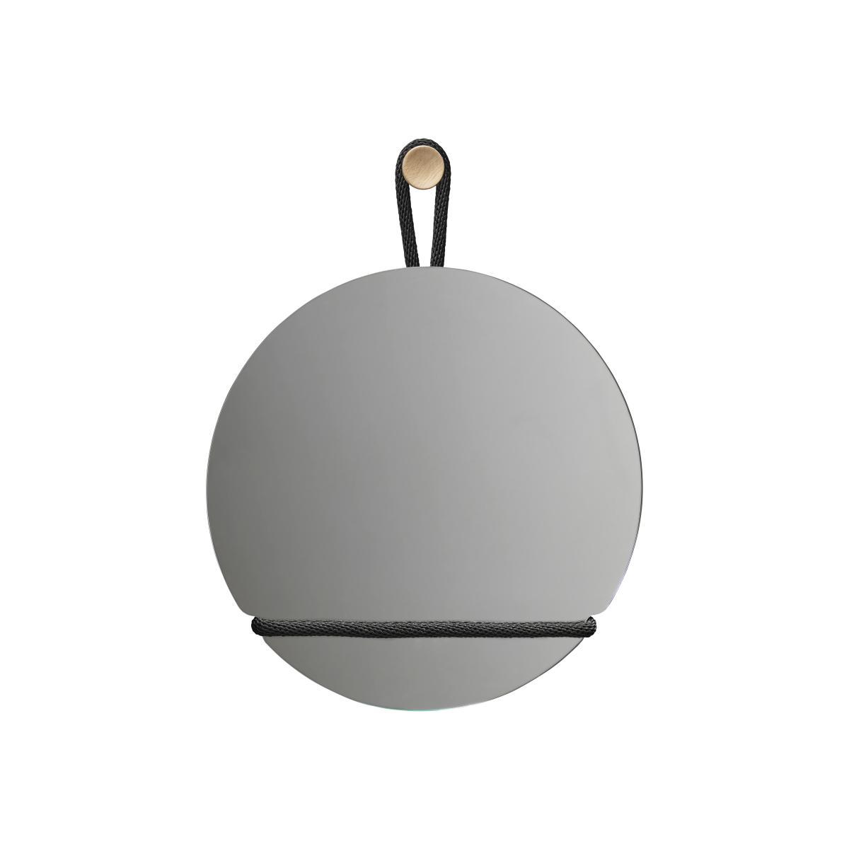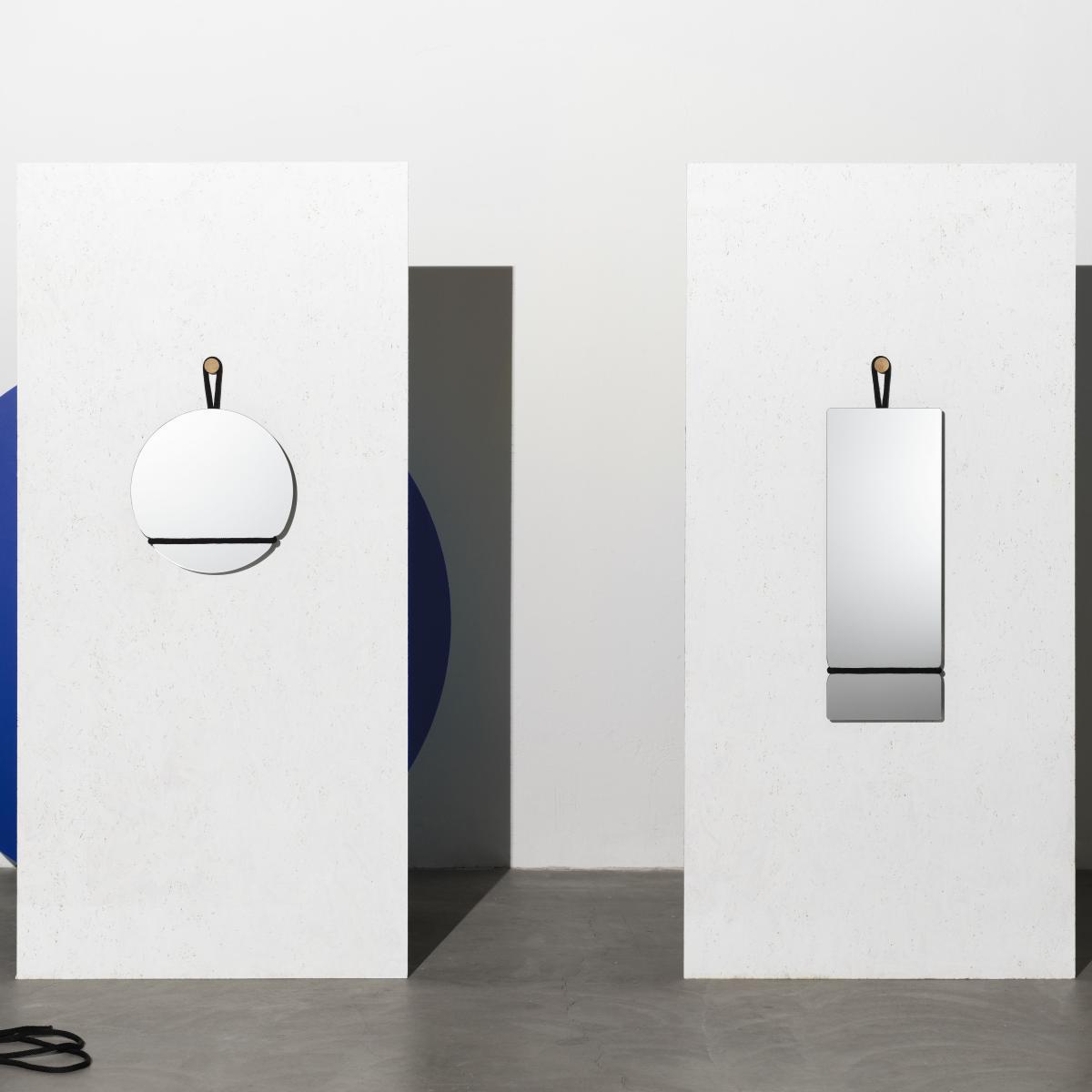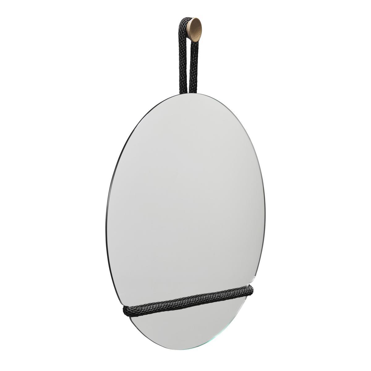 "What more do you need than a cord and hook to hang a mirror on a wall?" The elements used to hang the mirror become major players in the Lasso aesthetic. With the Lasso mirror collection, Axel Bjurström reduces all the parts of a wall mirror to the essentials, which are then assembled into a unified, functional design. No frame, just the mirror itself, assembled to form a tactile, attractive whole. The thick black cord that encloses the mirror seems to have been tightened onto the still-hot glass, leaving a mark on it, an indelible imprint. The cord hangs from a light oak hook. The designer explains: "It's all about the materials: the veined, warm wood, the soft textile and the hardness of the glass. I wanted to reveal all the opposites and bring them into a perfect, simple relationship with an organic expression. " You can slip a photo, a postcard into the thick fabric cord. ".