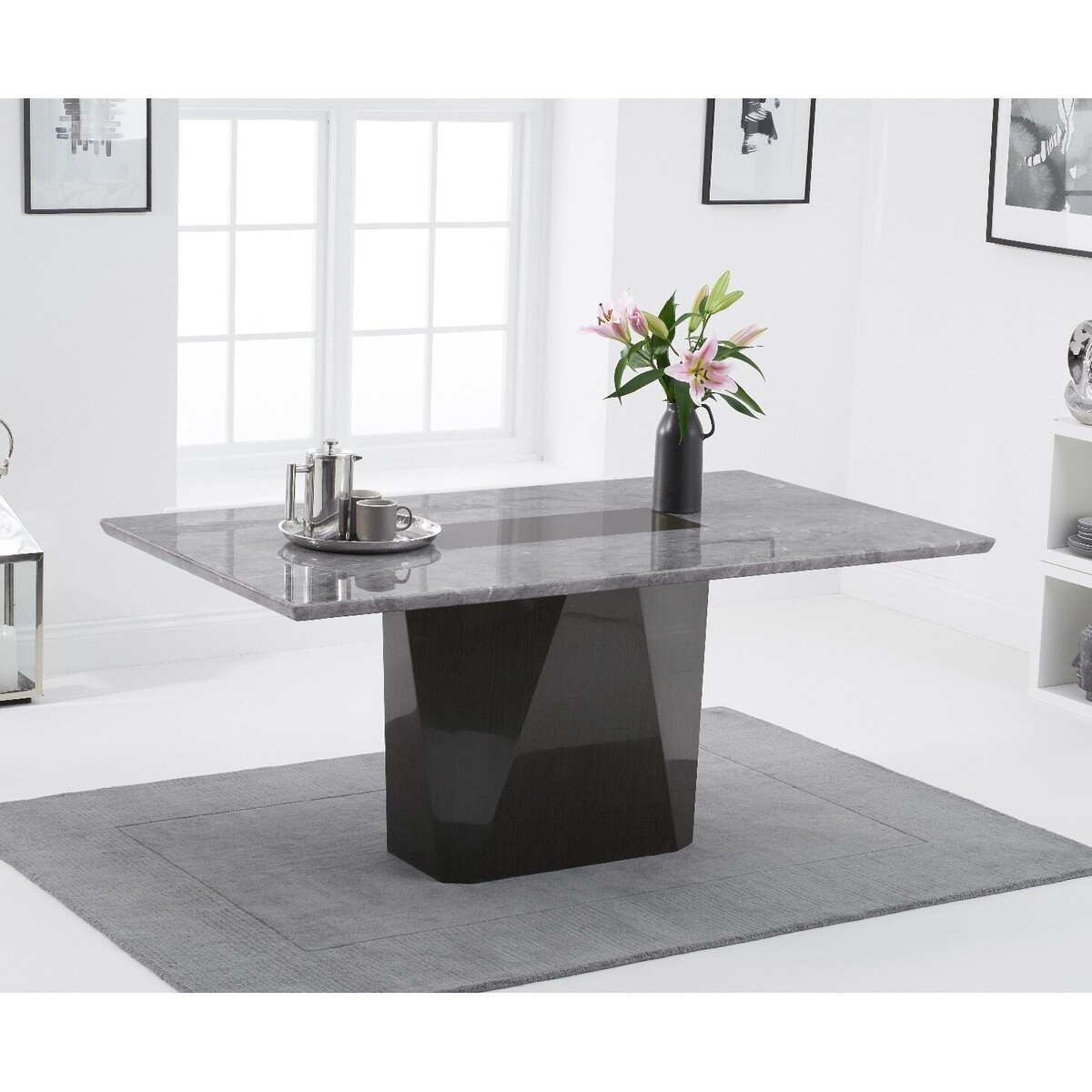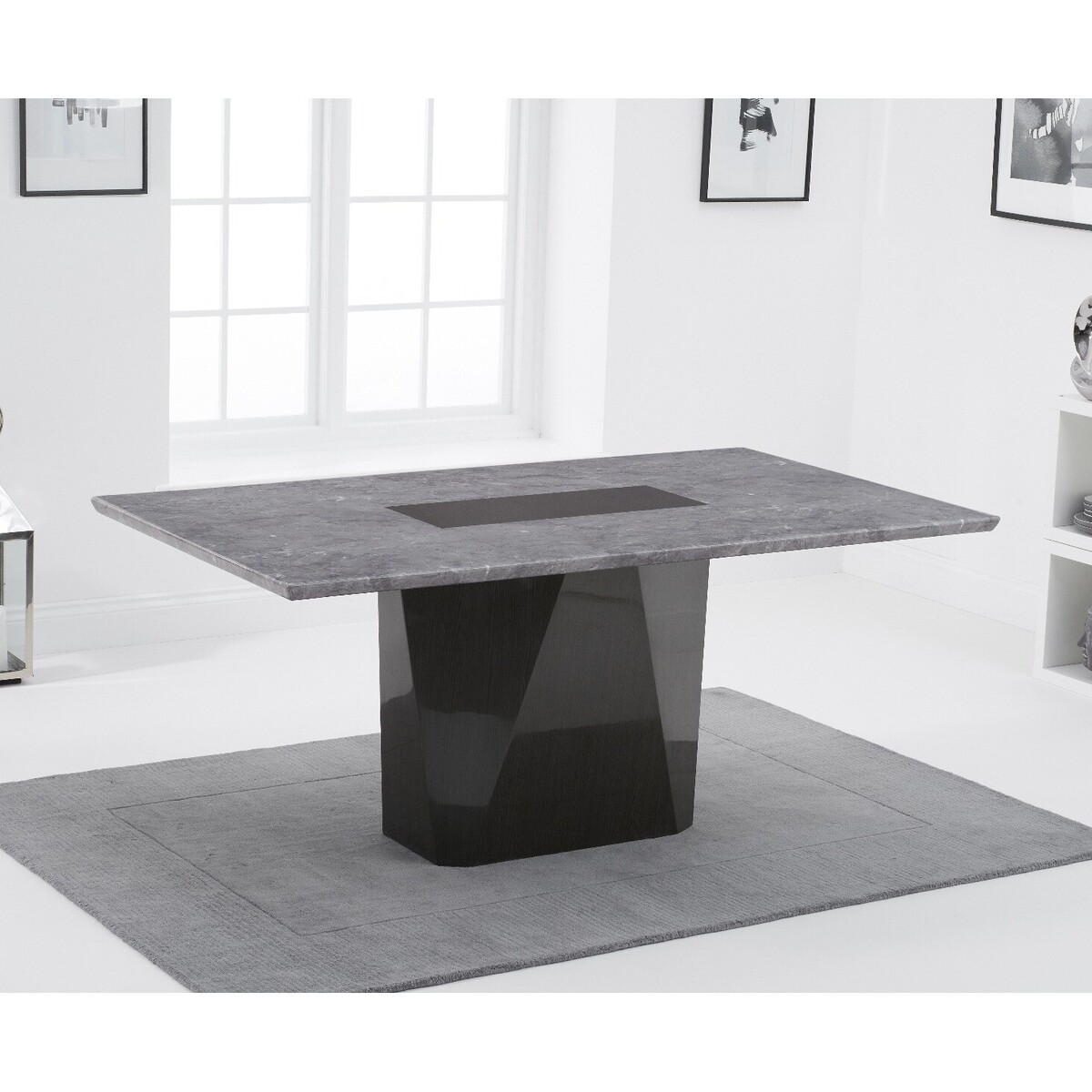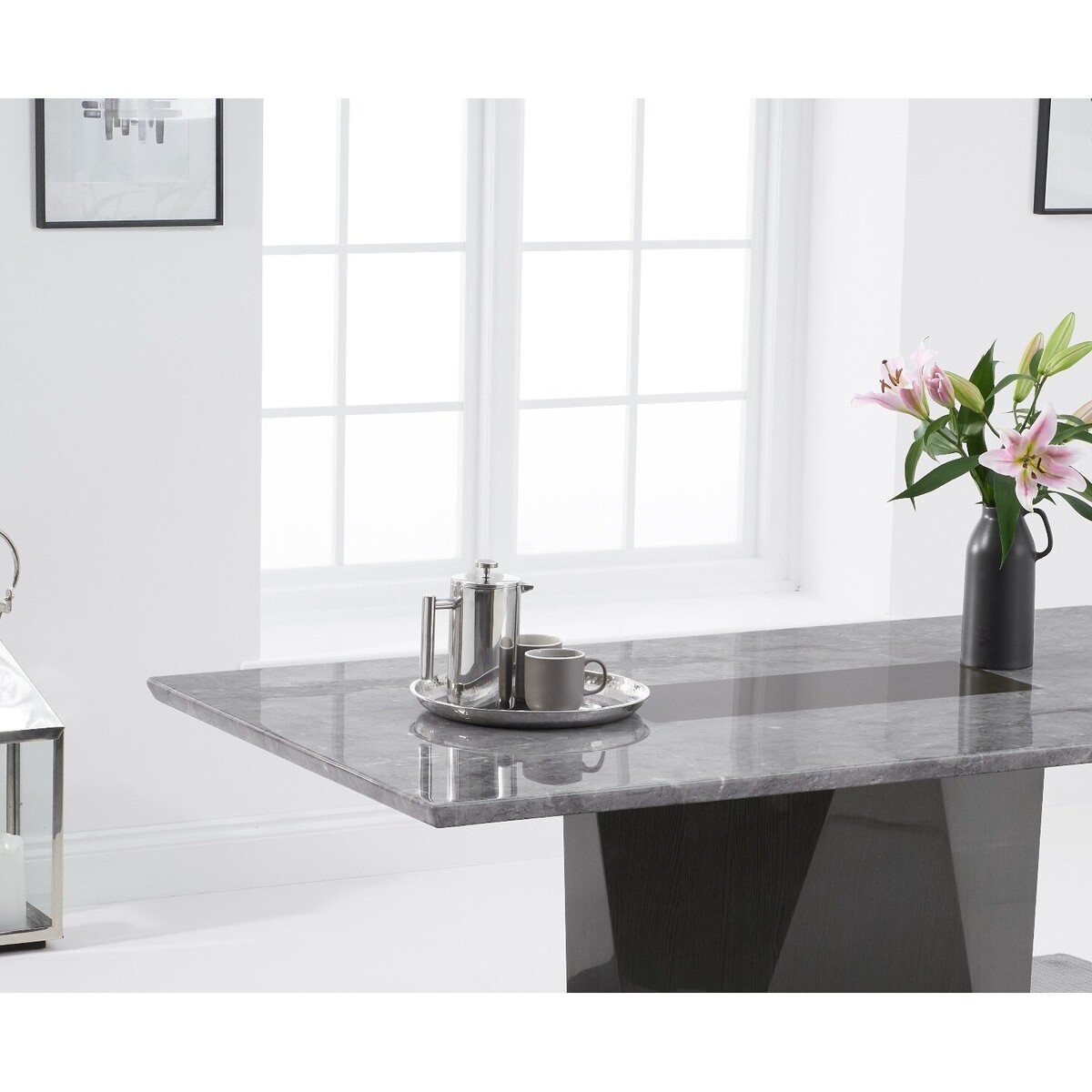 The Mario table, built from strong marble, contrasts light grey colouring with deep wooden depth, creating an alluring, sophisticated appearance. Smooth, shining, and elegant, this is a table that is designed to gracefully stand out. In the centre of the smooth marble lies the delicately positioned head of the base, exposing dark, woody textures. Angles etched into the dark wood of the Mario's base catch the light and shadow, opulently supporting the marble top.