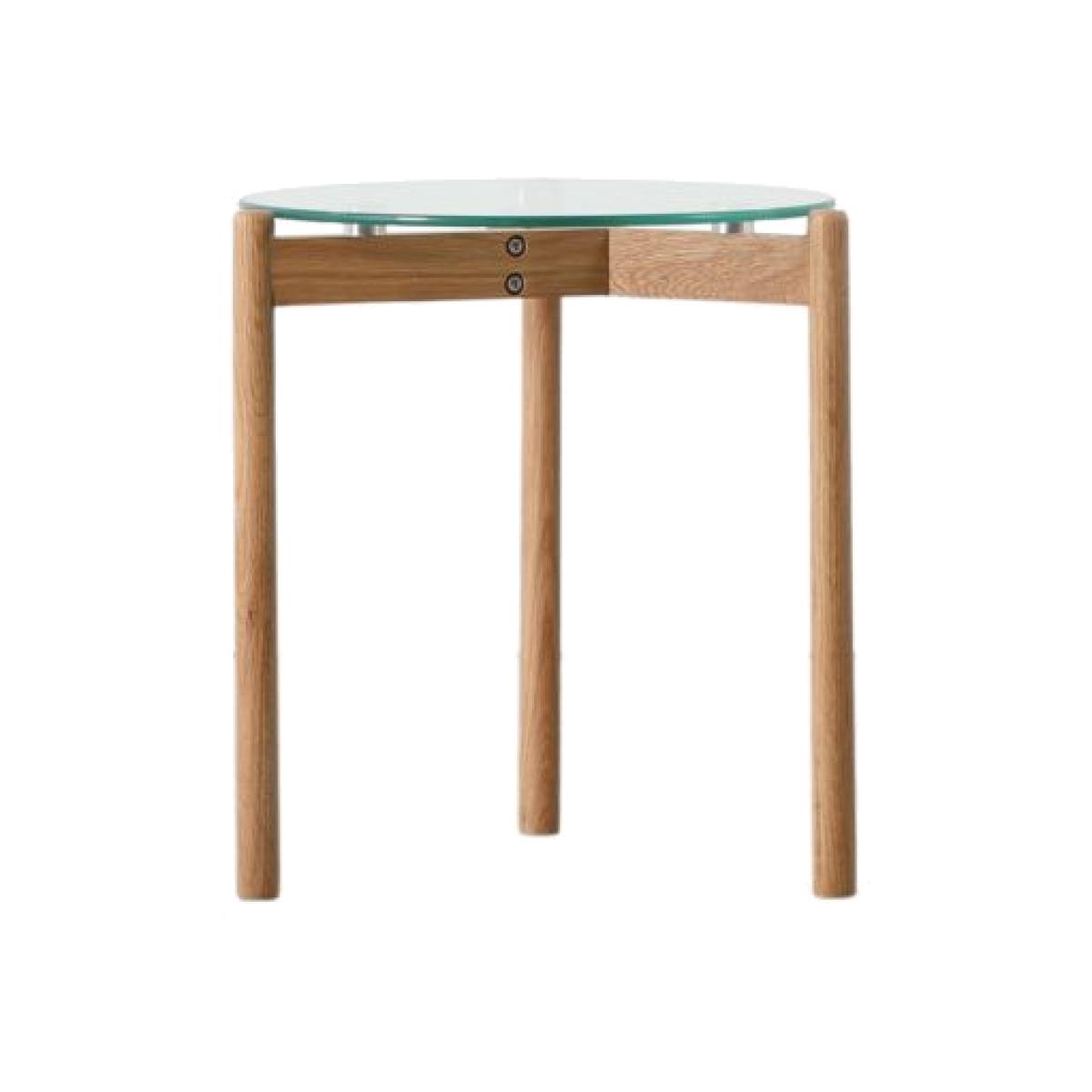 Lovely oak side table offering a stunning contemporary style. It features a beautifully designed solid oak base combined with a tempered clear glass top. A matching coffee table is available, and both are also offered in a black oak finish with a smoked glass top. The tables are part of our Packed-Flat Design Project, offering easy delivery to any room in any property, whilst reducing the packaging needed. Easy assembly is required, but all the tools needed are supplied. Material: Tempered Glass. Colour/Finish: Natural.