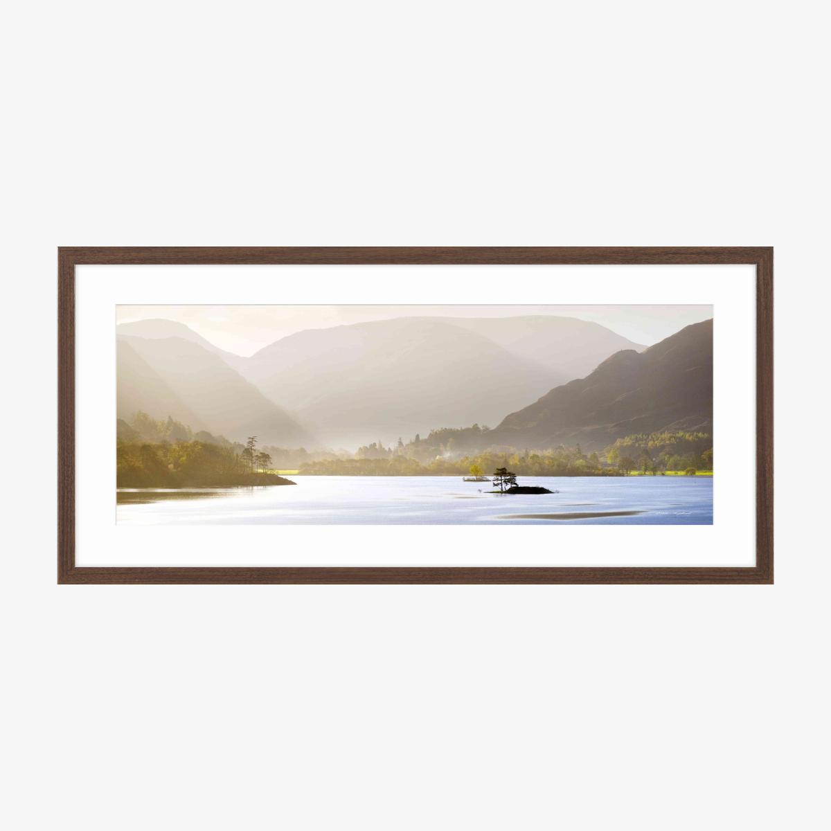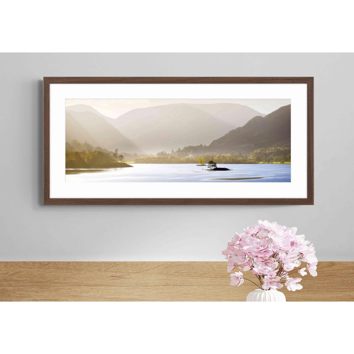 Transport yourself to the Lake District with this stunning framed picture of Ullswater. This soothing vista looks at home wherever you hang it. Why you'll love it A serene image of Ullswater in the Lake District. Features a soothing neutral colour palette. Reproduced from artwork by Mike Shepherd. Displayed in a walnut-coloured frame. Made in the UK. What you need to know Metal hanging fitting with a nylon cord. Mounted and framed with glass. Dimensions Height: 49 cm (20 in). Width: 104 cm (41 in). Depth: 3 cm (2 in).