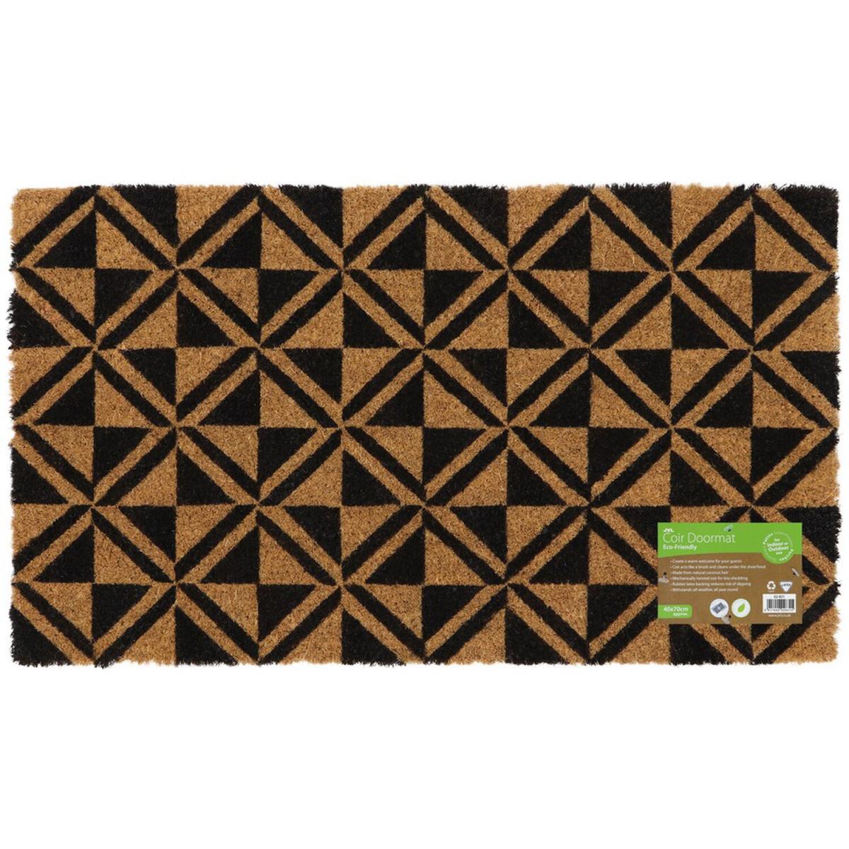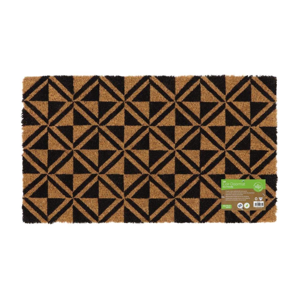 Latex Back Patterned Coir Door Mat - Natural Coir with Black Design
