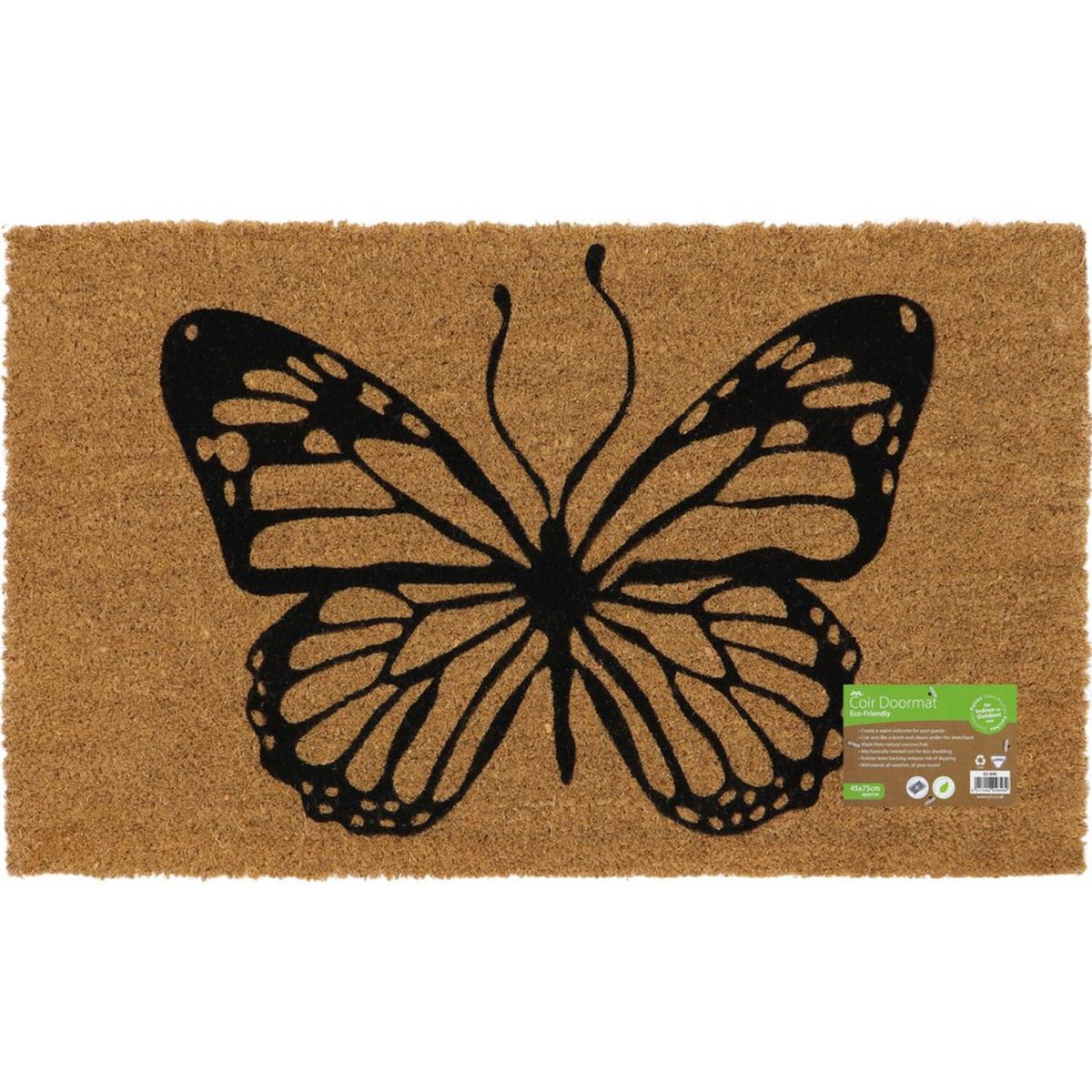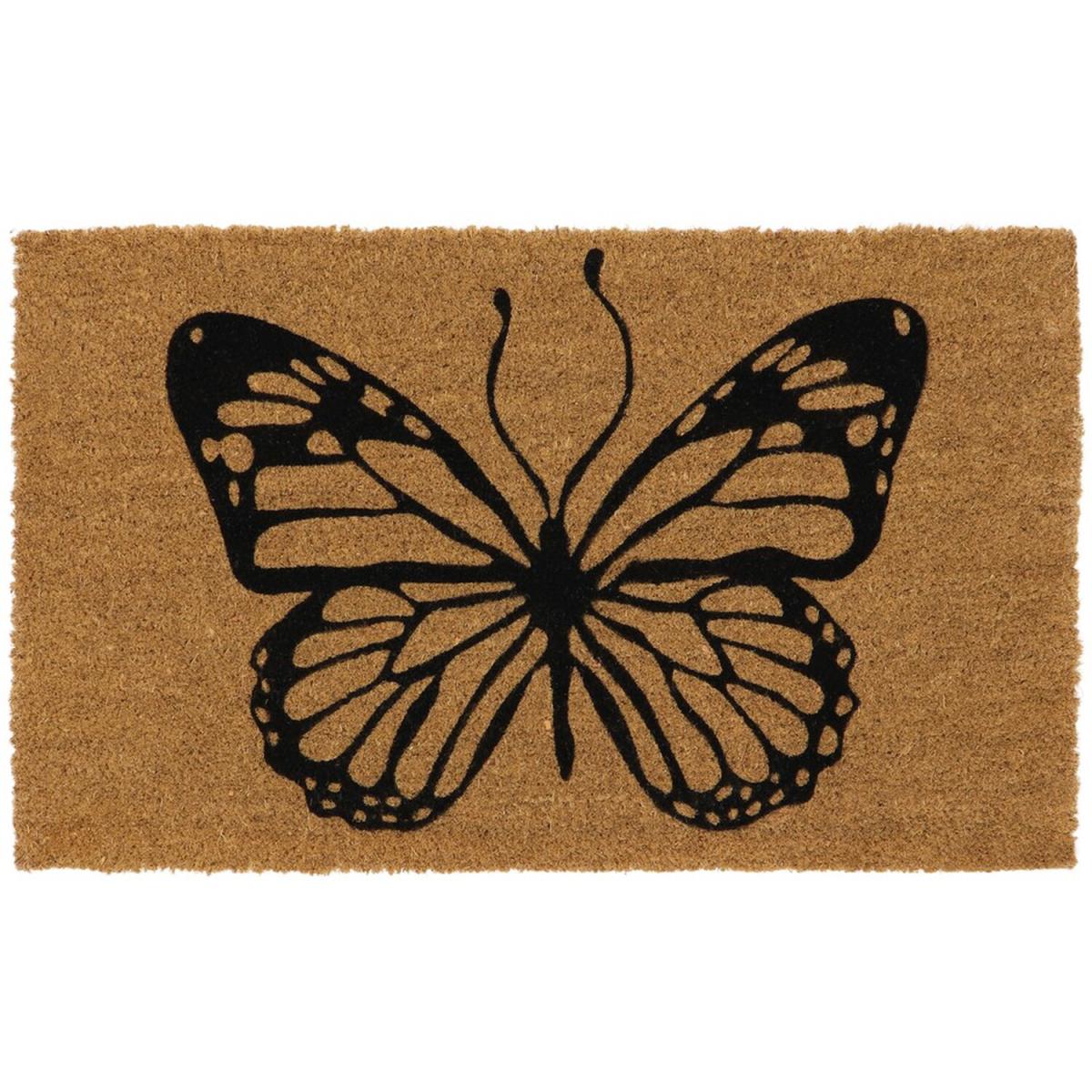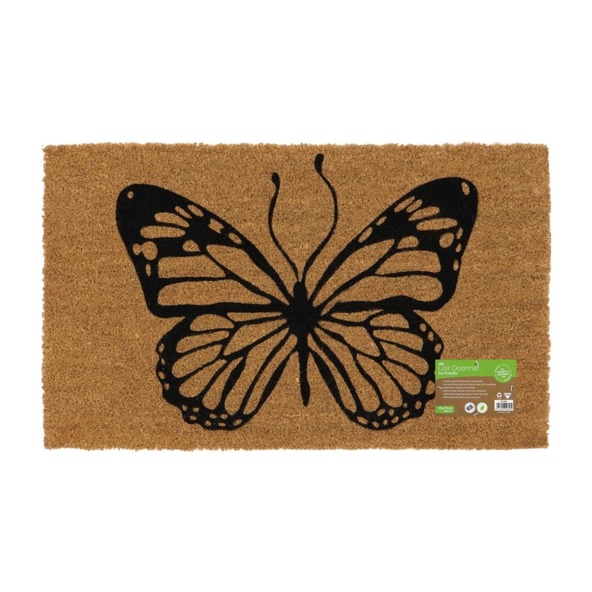 Latex Backed Butterfly Coir Door Mat - Natural Coir with Black Design