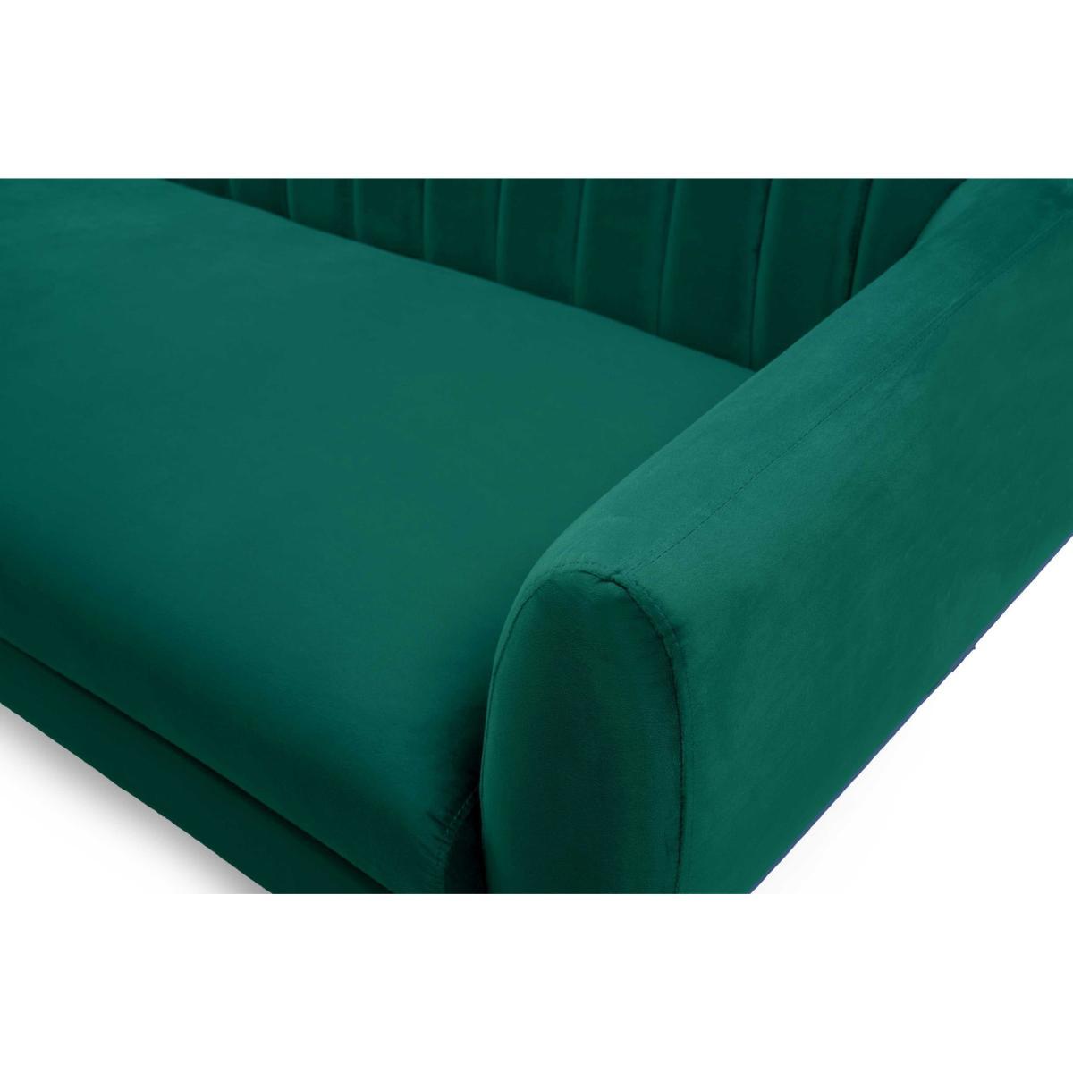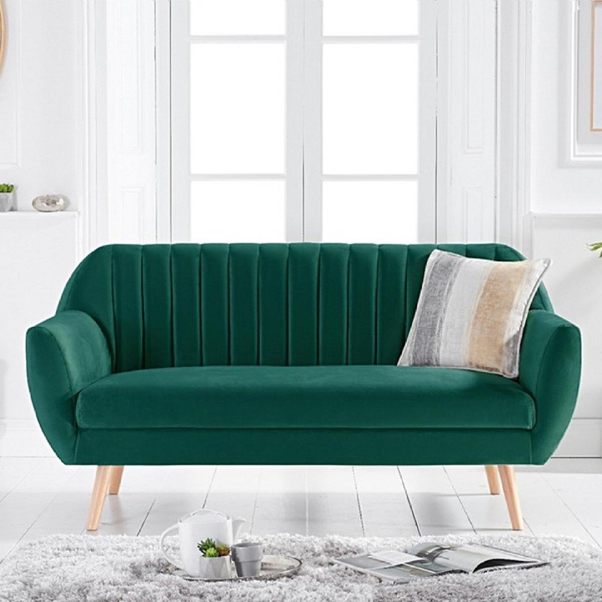 I love this sofa for its bold green velvet finish, which instantly adds a touch of luxe to any living space. It works particularly well in eclectic or modern interiors, but can also be tailored to more classic settings with the right accessories. For styling, consider pairing it with neutral-toned cushions and minimalistic coffee tables to let the colour be the focal point. Its clean lines and subtle detailing make it versatile, while the plush velvet adds a cosy feel. Practical tips include keeping the upholstery protected with gentle cleaning products and adding textured throws or cushions for extra comfort and visual interest. This piece is a great choice for creating a vibrant yet sophisticated living room aesthetic.
