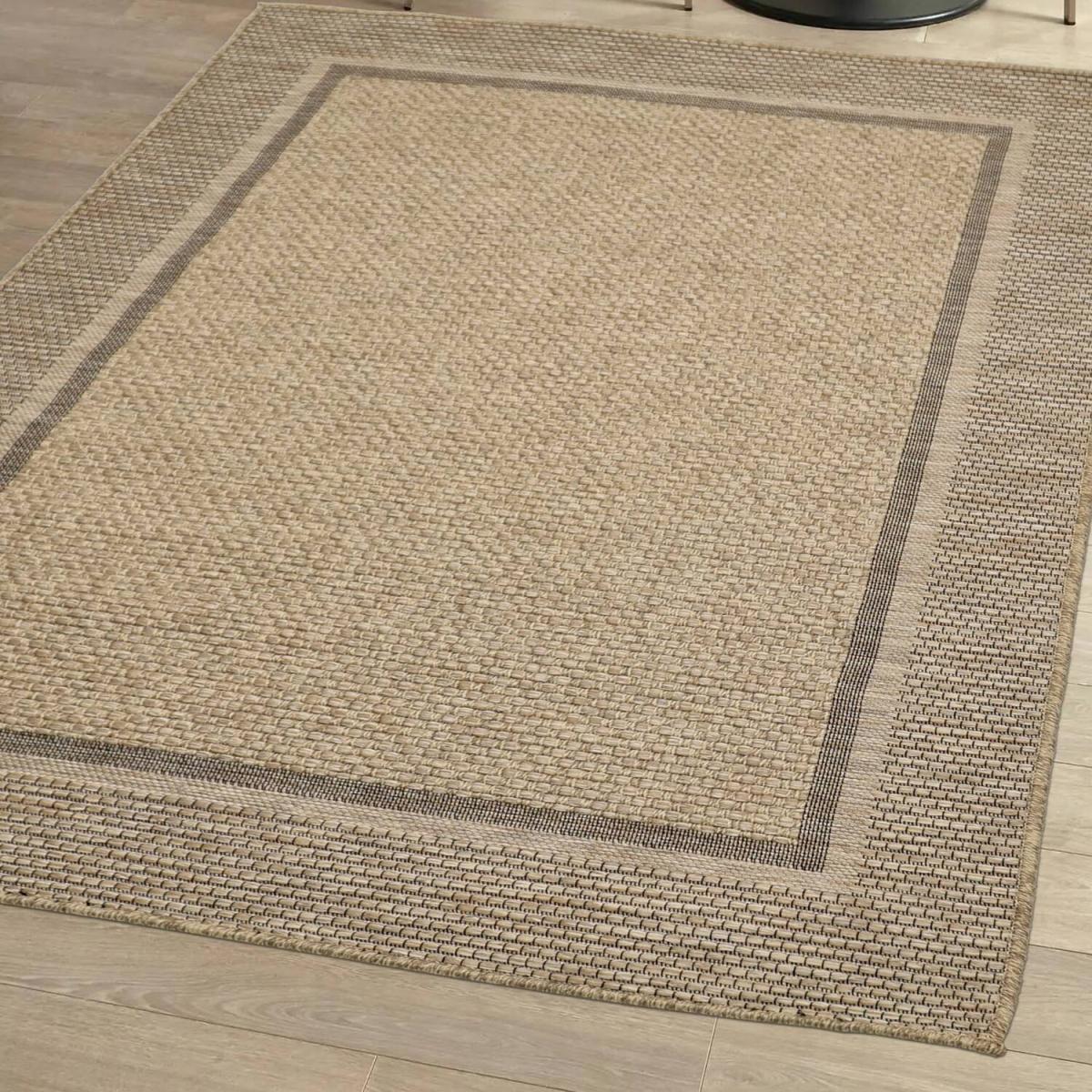 Suitable for indoor and outdoor living, the Summer range is durable and woven in stylish neu- tral tones to enhance your space with a naturally-inspired feel. Latte Bordered Eye Catching Indoor Outdoor Rug - Latte / 120cm