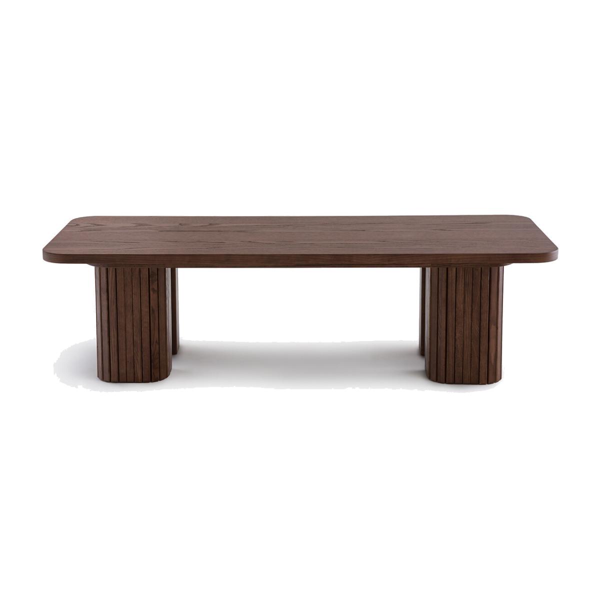 The Latti coffee table is part of the La Redoute Intérieurs Signatures collection. A selection of exclusive creations, designed by our in-house design studio. Inspiring, easy to live with, trendy... these products have become our customers' favourites. and no doubt yours!. In-house design by Elise Vallée:"The Latti coffee table is characterised by its simple, rounded and elegant shapes. Wooden strips adorn the generous legs, creating a graphic line, adding curves and rhythm. "Product Details • Table top in walnut-stained ash-veneered chipboard with polyurethane varnish finish • Legs in semi-curved MDF with walnut-stained ash veneer and solid ash slats, finished in polyurethane varnish • Felt pads • People required for assembly: 2. Care Advice • To protect your coffee table, consider trivets, coasters and placemats. Dimensions • Width: 130cm • Height: 36cm • Depth: 50cm • Thickness of top: 3.5cm/1.5" • Legs: W41 x H22 x D33.5 cm • Gap between the legs: 12cm • Weight: 29kg • This product requires assembly. • WOOD FROM MORE SUSTAINABLY MANAGED FORESTS AND CONTROLLED SOURCES. FSC® Mix wood contains at least 70% FSC® certified and/or recycled wood, the remainder being FSC® controlled wood. Dimensions and weight of parcel2 parcels • W138 x H12.5 x D58 cm. 15kg • W46.5 x H40 x D49.5 cm. 19kg