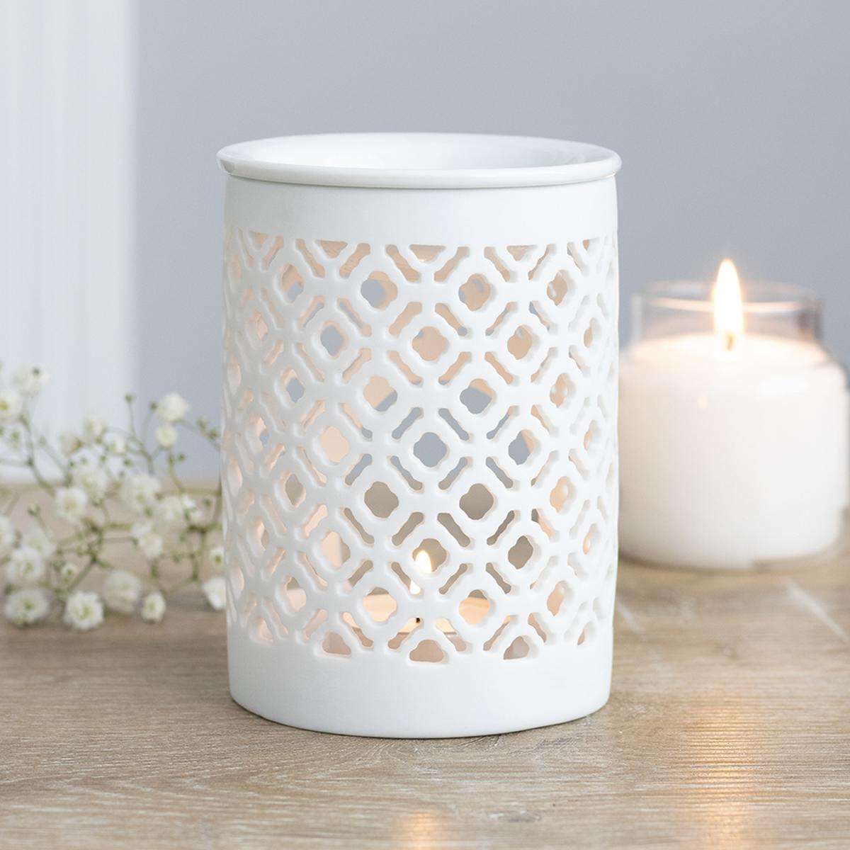 The Lattice Cut oil burner is a stylish and versatile piece that works well in both modern and understated interiors. I love its clean white finish combined with the intricate lattice detail, adding texture without overwhelming a space. It’s perfect for creating a calm, inviting atmosphere, especially when paired with minimal or neutral decor. For practical styling, place it on a mantelpiece, bedside table, or shelf alongside simple ceramics or greenery. Remember, it’s a subtle statement piece that can blend seamlessly into various settings, helping enhance the mood with scented oils while adding a touch of charm to everyday spaces.