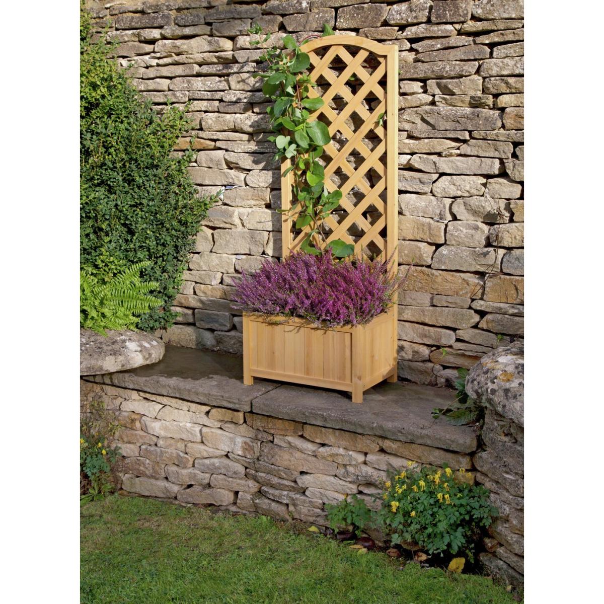 This tall lattice straight planter is the perfect spot for planting colourful climbers, like clematis, sweet pea or rambling roses. Made from frost resistant timber, it's a top pick for a patio or garden. Made from timber - FSC certified. Flat packed. Size H120, W45, D30cm. Weight 2.8kg. Manufacturer's 1 year guarantee.