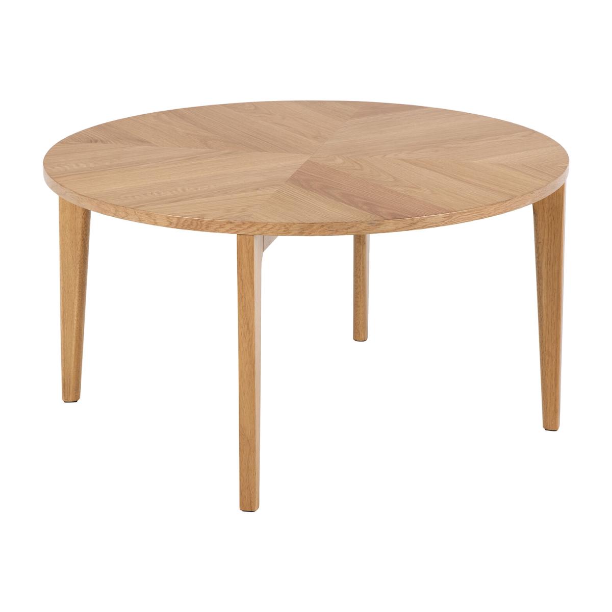 I’m a fan of this oak table for its clean lines and warm, natural finish - it slots straight into Scandi, mid-century or coastal schemes without fuss. The round top softens angular sofas and allows good flow in smaller living rooms, while the parquet detail gives just enough texture to stop it feeling plain. Keep styling simple: group a low vase with fresh foliage, a small candle and a slim coffee-table book on a tray to create a neat focal point. Pair with a chunky wool rug in a neutral tone to anchor the table and add a layer of cosy contrast.