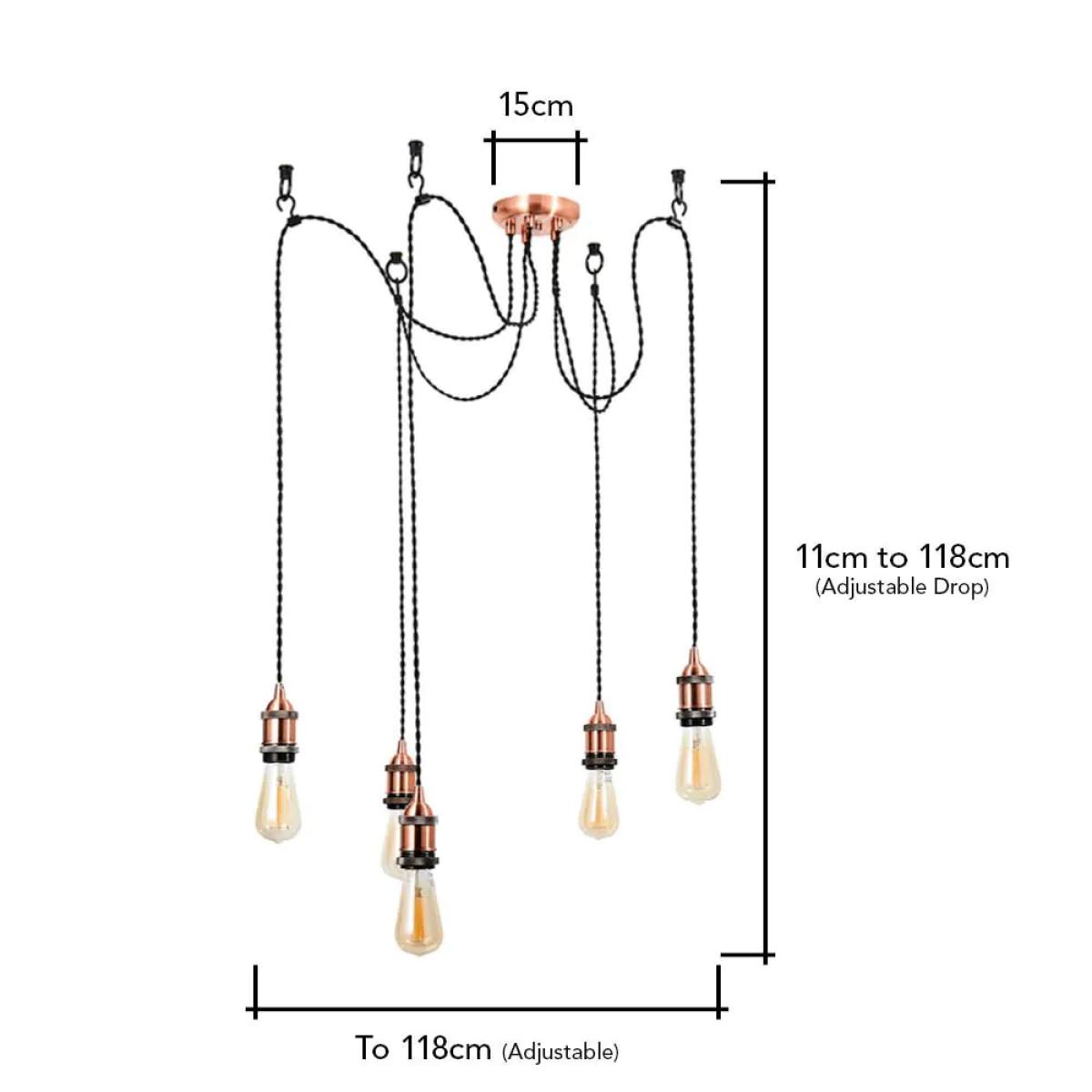 Enhance your interior decor with the charm of the Laura 5 Light Ceiling Pendant in Antique Copper. This pendant light serves as a striking centrepiece, giving your space a touch of vintage elegance. The 5 lights provide ample lighting to fill larger rooms and provide a warm glow that creates an inviting atmosphere. Perfect for styling over dining tables or kitchen islands, or just to create a stunning focal point in a room or hallway. Pair this light with a vintage filament lightbulb to enhance the vintage feel within your space.