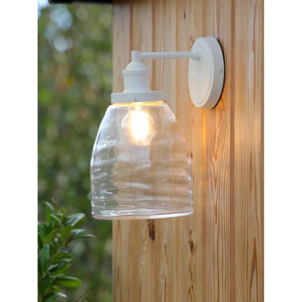 I love this wall light because of its charming, vintage-inspired design that adds a touch of character to outdoor spaces. It works particularly well in rustic or cottage-style exteriors, but can also add a soft, welcoming glow to contemporary gardens when paired with sleek furnishings. For styling, consider placing it beside patio doors or along garden paths to create a layered lighting effect. Practical tips include opting for warm white bulbs to enhance its cosy appeal and pairing it with matching outdoor lanterns for a cohesive look. Its glass shade allows the bulb to be showcased, so choosing a decorative filament filament bulb can elevate its visual impact.